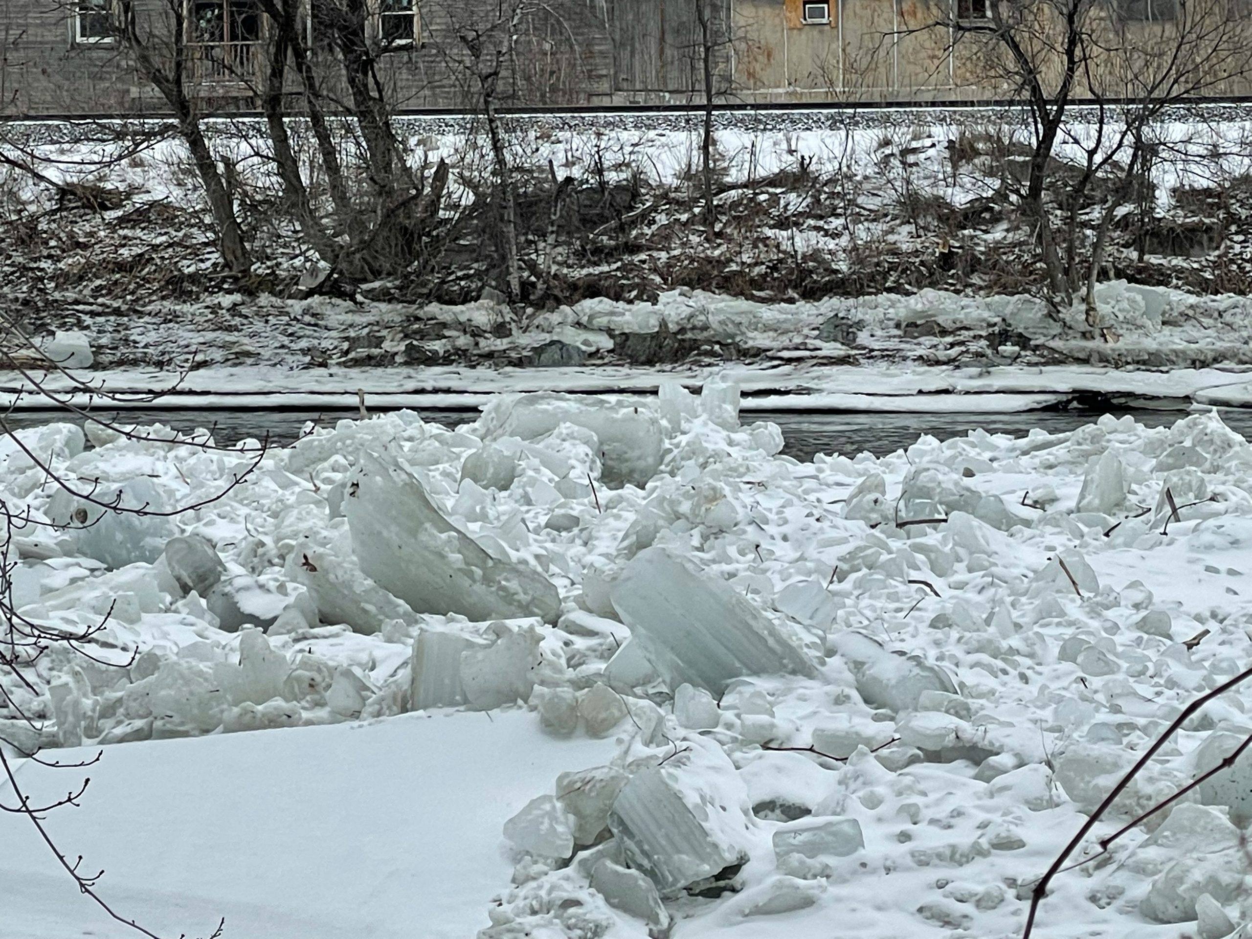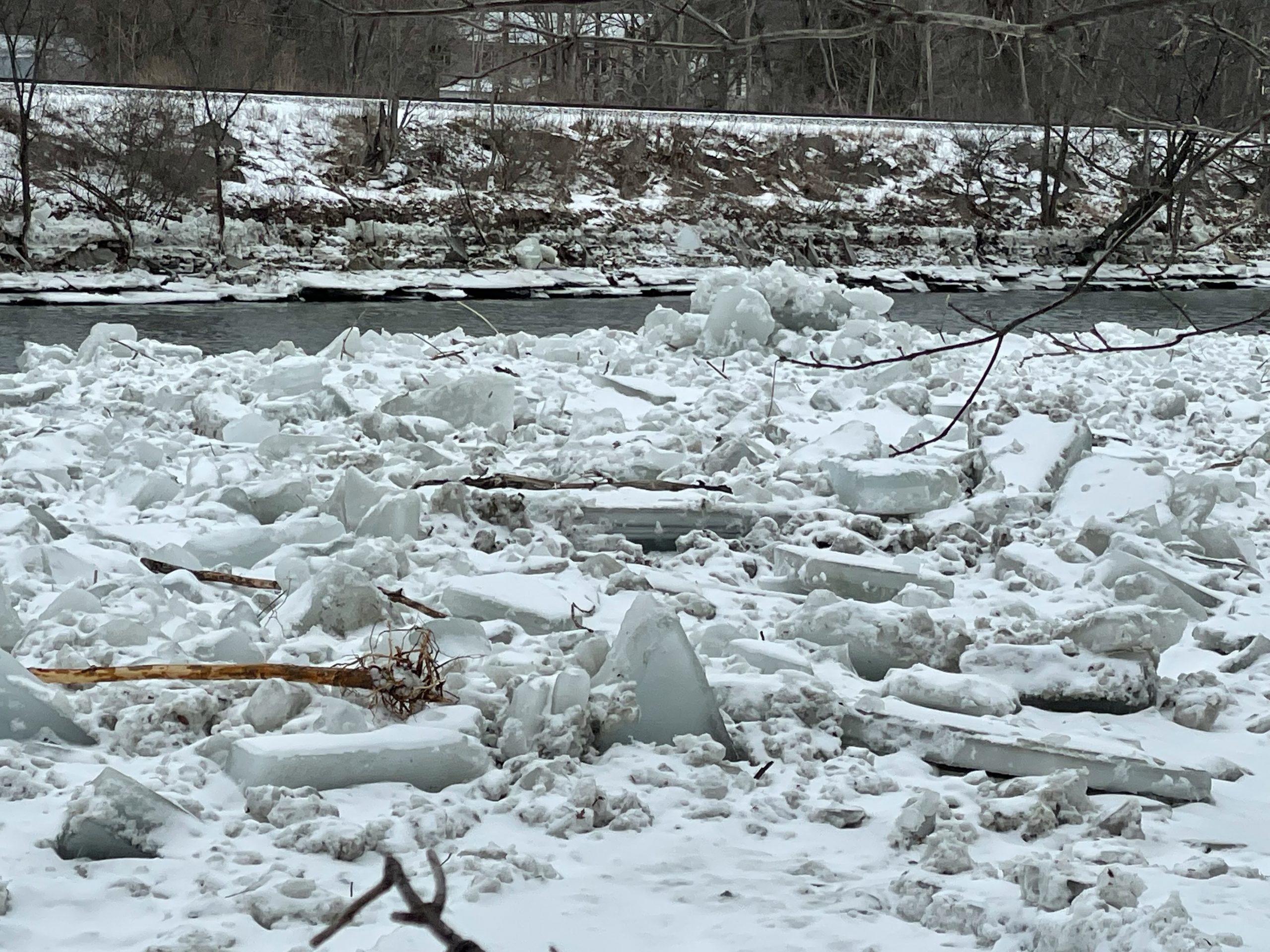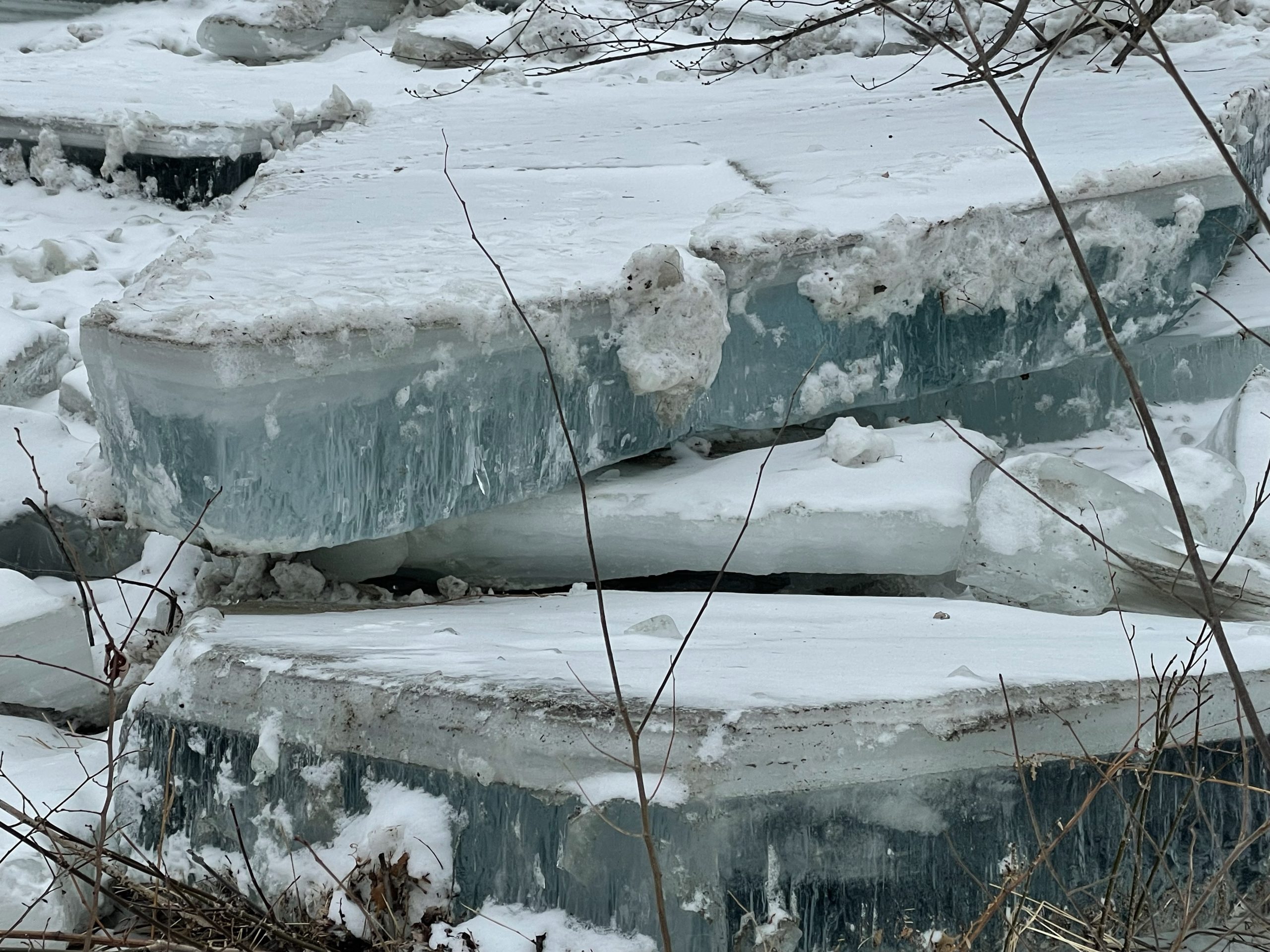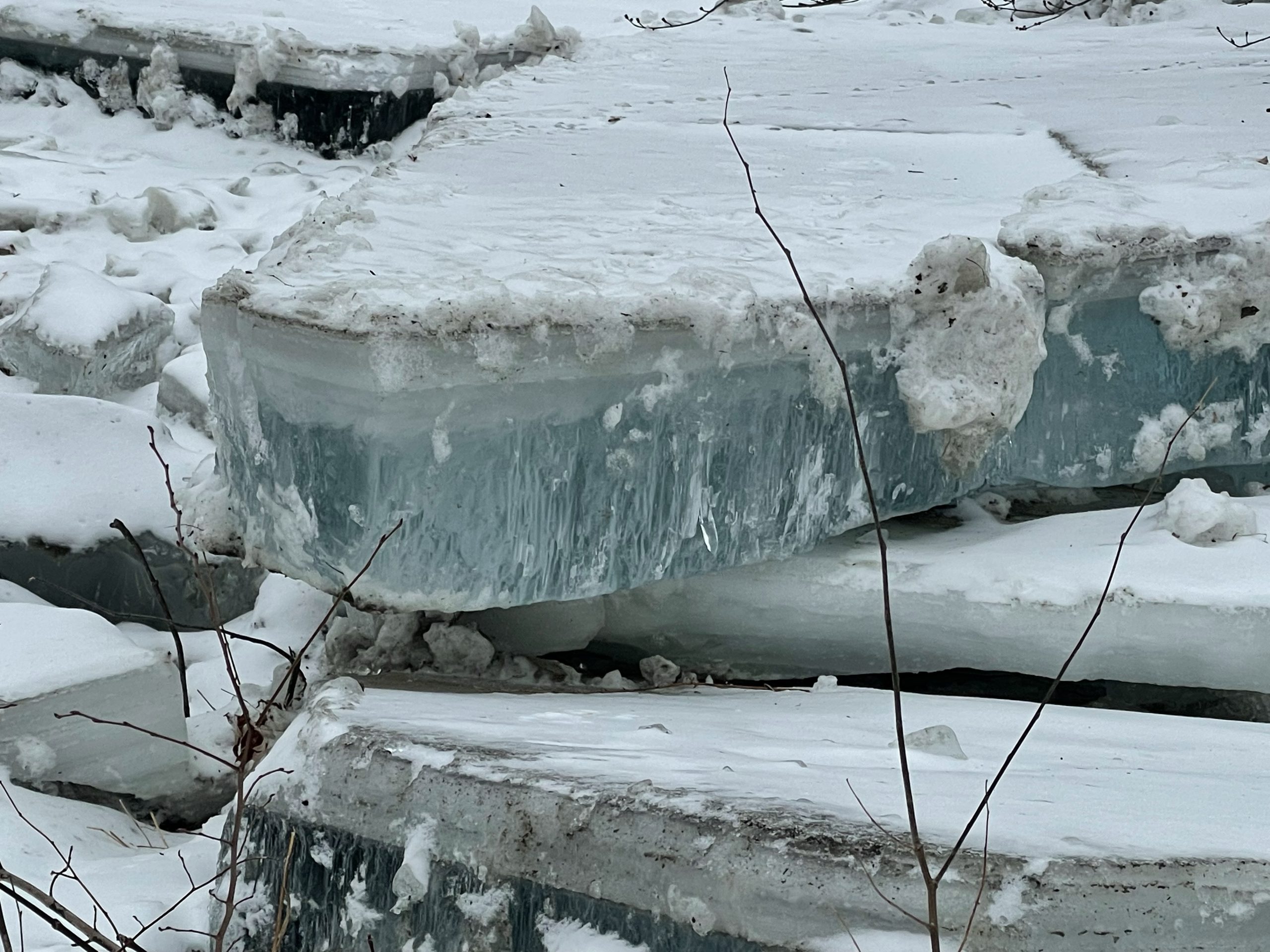 ‘Linda and David and Willow took off around 10 o’clock this morning… After they left I got out for a run and admired the river ice that had broken up. Some of it is a good foot thick
