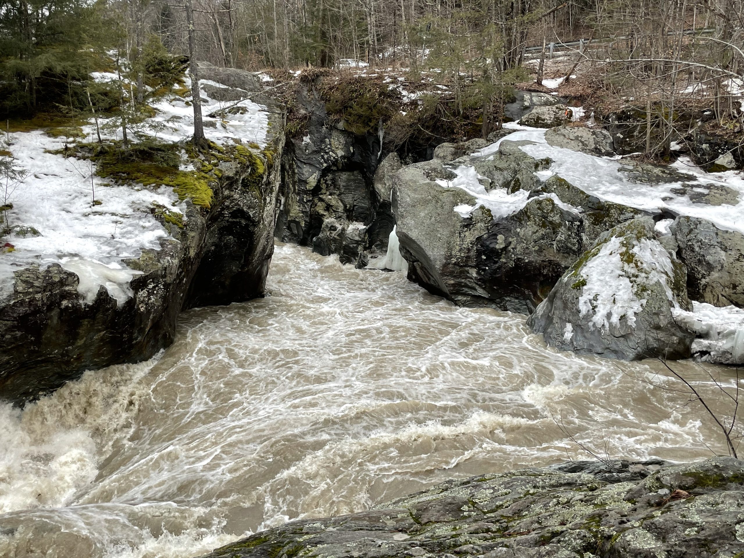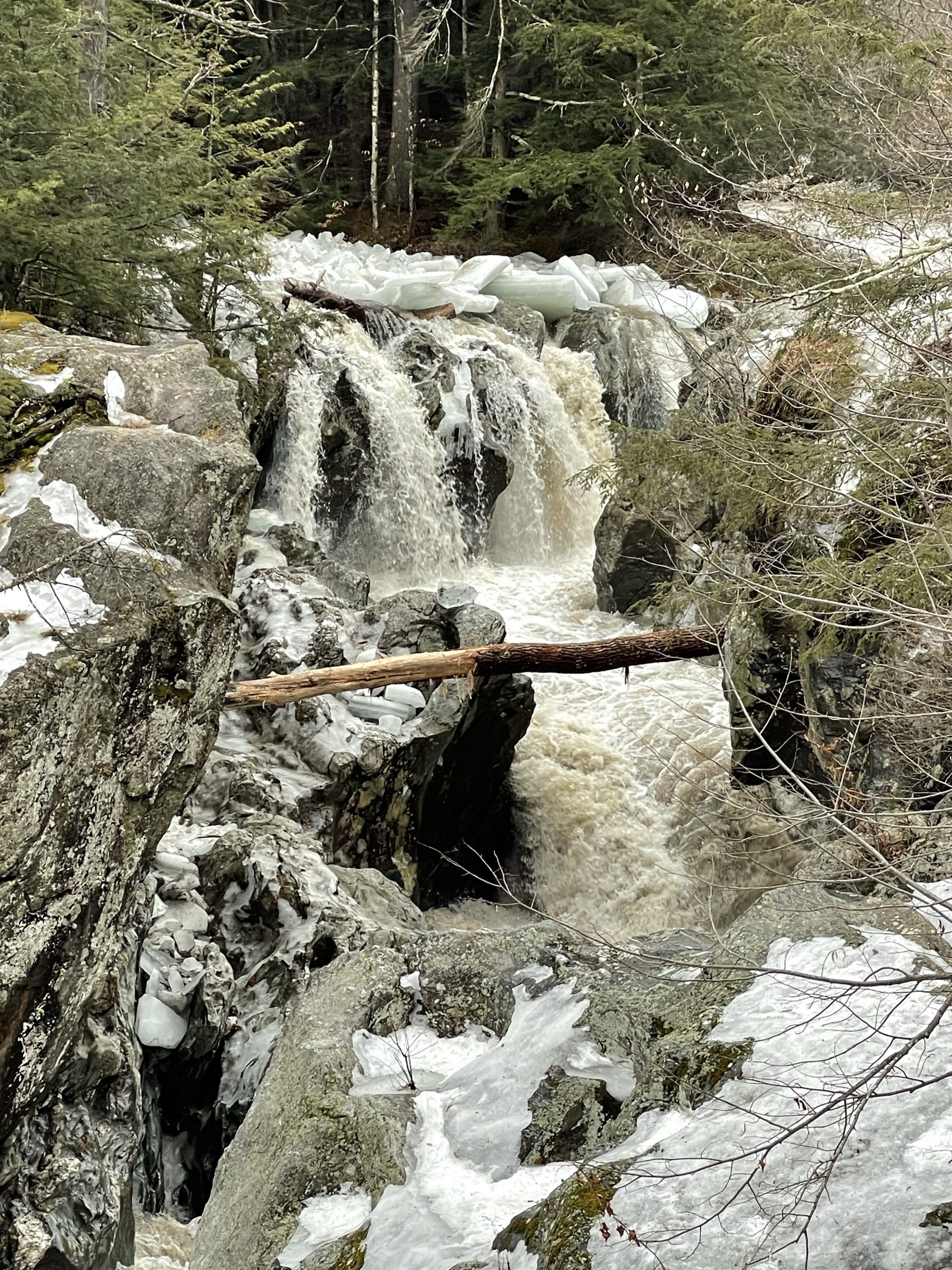It’s been raining for two days… Almost all the snow is gone. Our friends Rachel and tasha are still here .. So I wanted to at least get Raechel outside. We took a short hike around the gorge… Even with the snow gone it was beautiful. Huntington was way up so seeing the water coming over the falls was a fun adventure