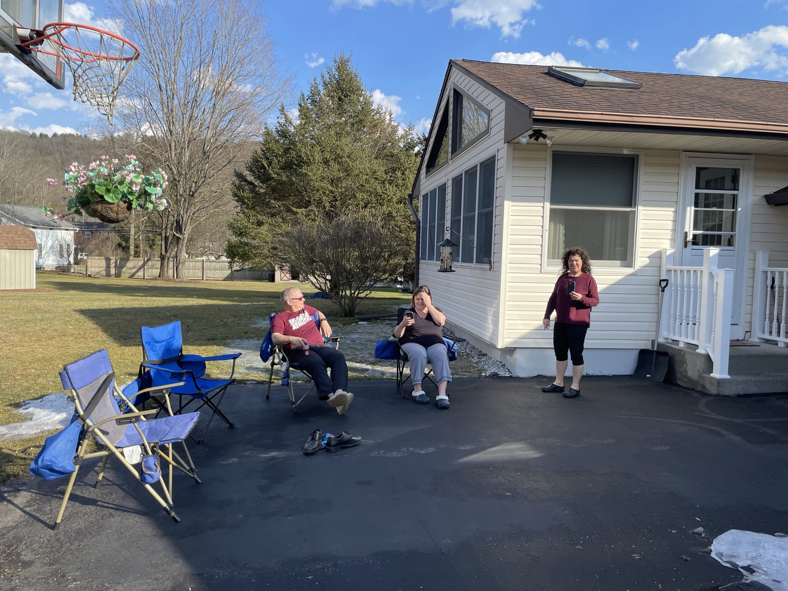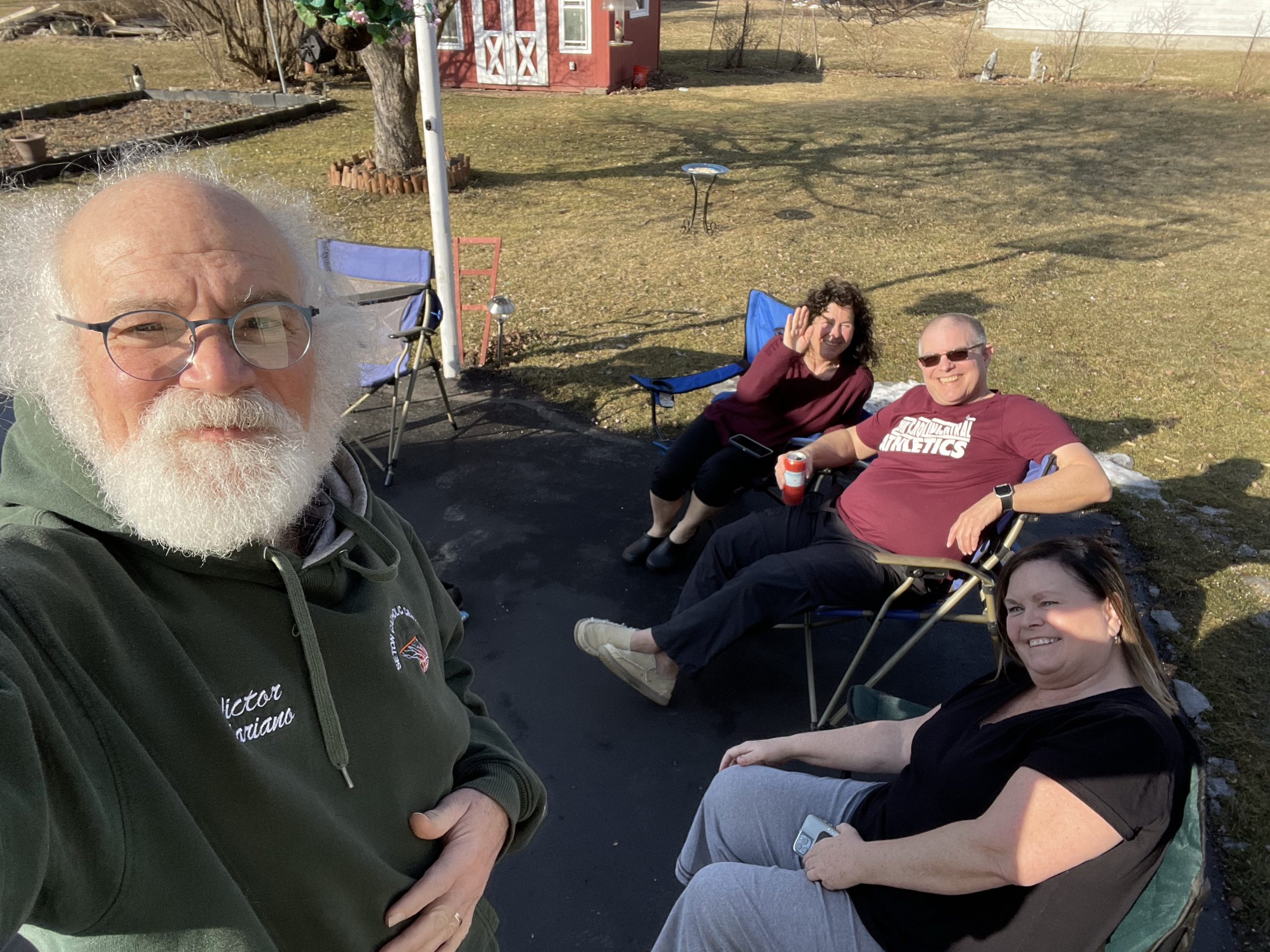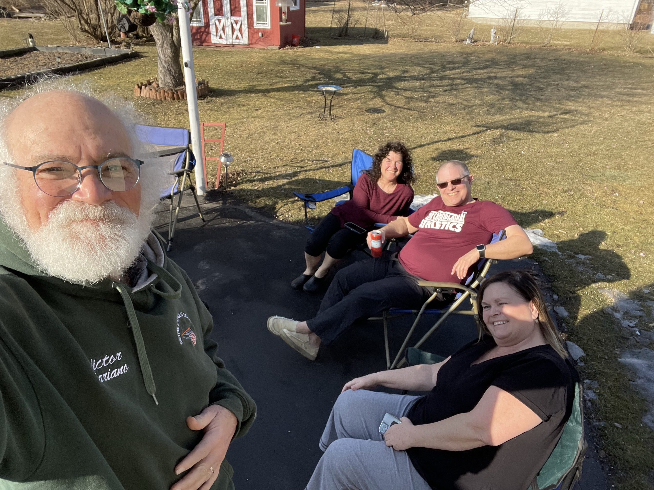 From there we all drove back to Chou and Patz and sat out in the 70° sun.… So strange that there had been several inches of snow there the day before