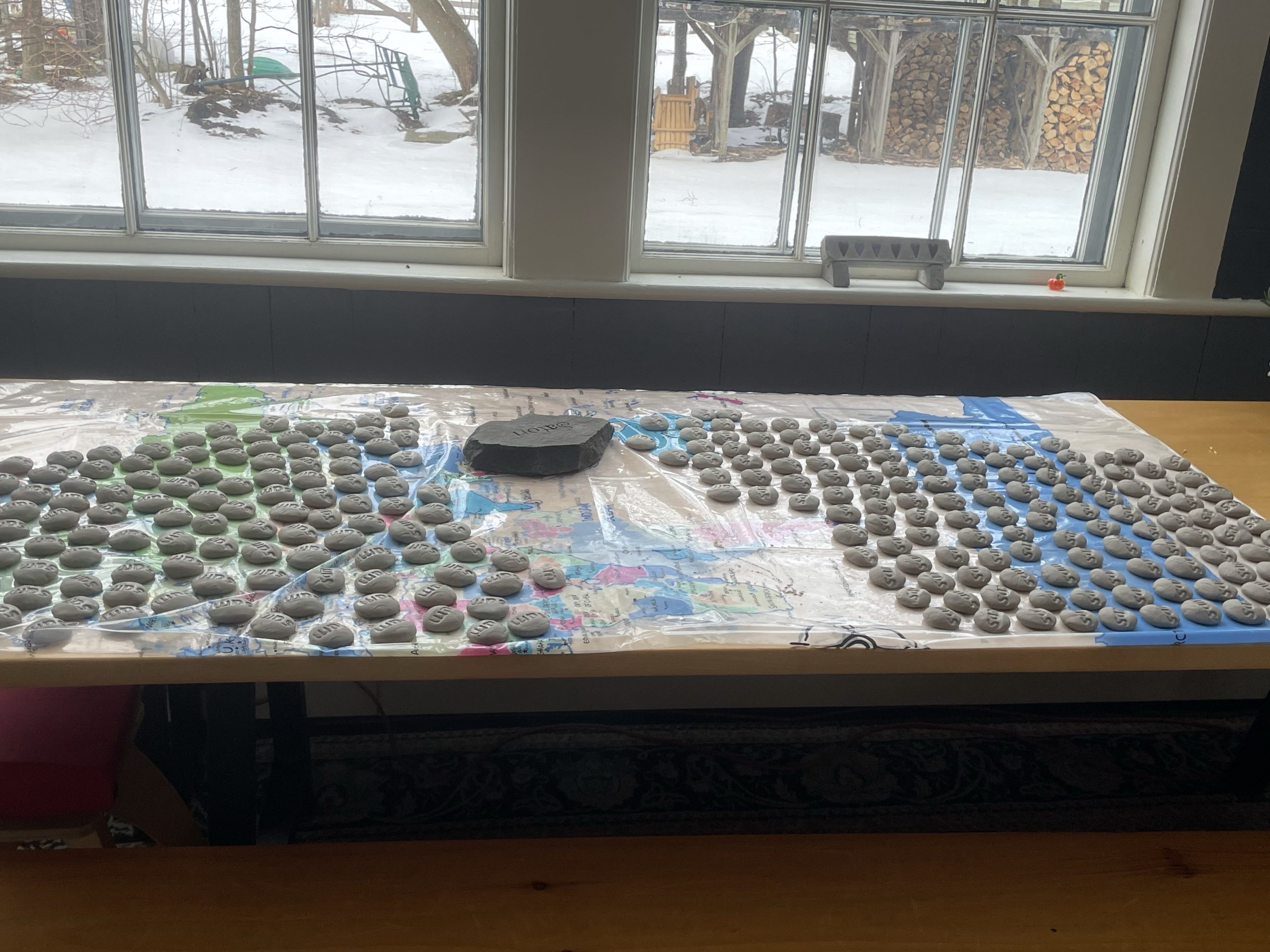 Today was the Ides of March… Supposedly an inauspicious day according to Julius Caesar. For me it was a pretty peaceful one… ‘Diane had used last night to start making a bunch of Sam stones… They were so beautiful laid out on the table. It’s nice to be still needing to (getting to?.. wanting to ?) Make these 15 years after sam’s death. We still get plenty of requests for them. Enjoy hearing people find them all over the world. I think sam would think it’s pretty cool.