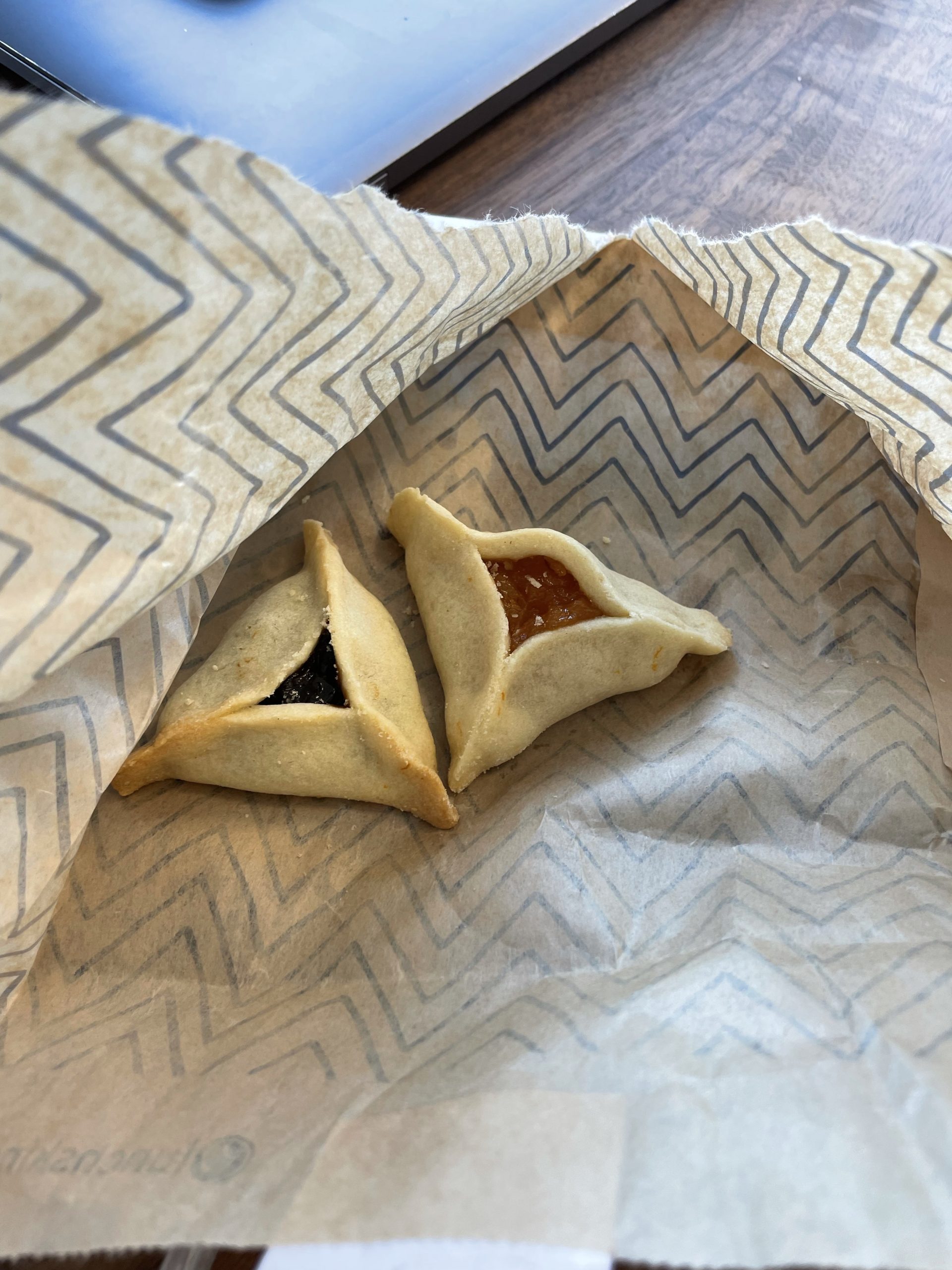 It wasn’t the only holiday though… My friend aaron reminded me that the day before it was also Purim… He brought in some hamantaschen for her friend and teammate Andria… She shared some with us which was really yummy