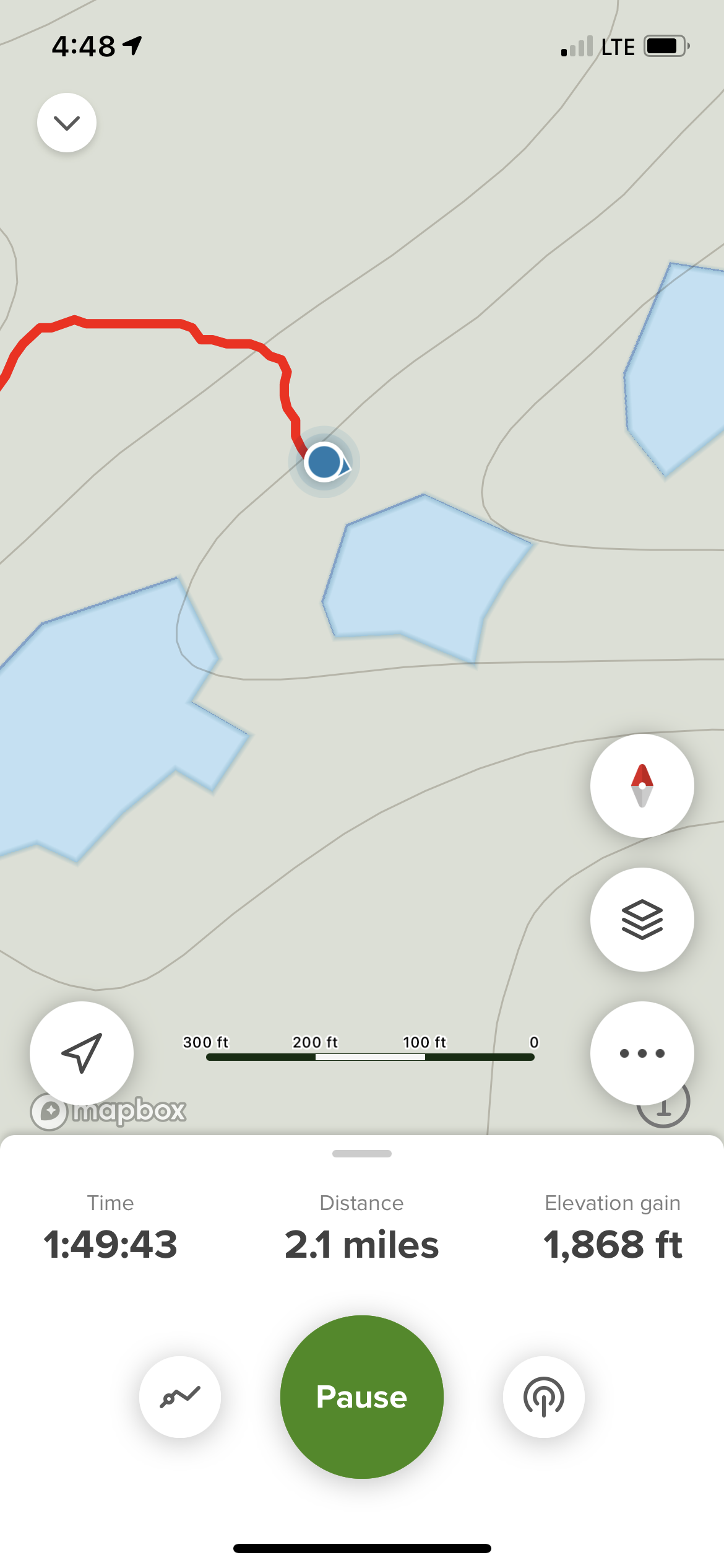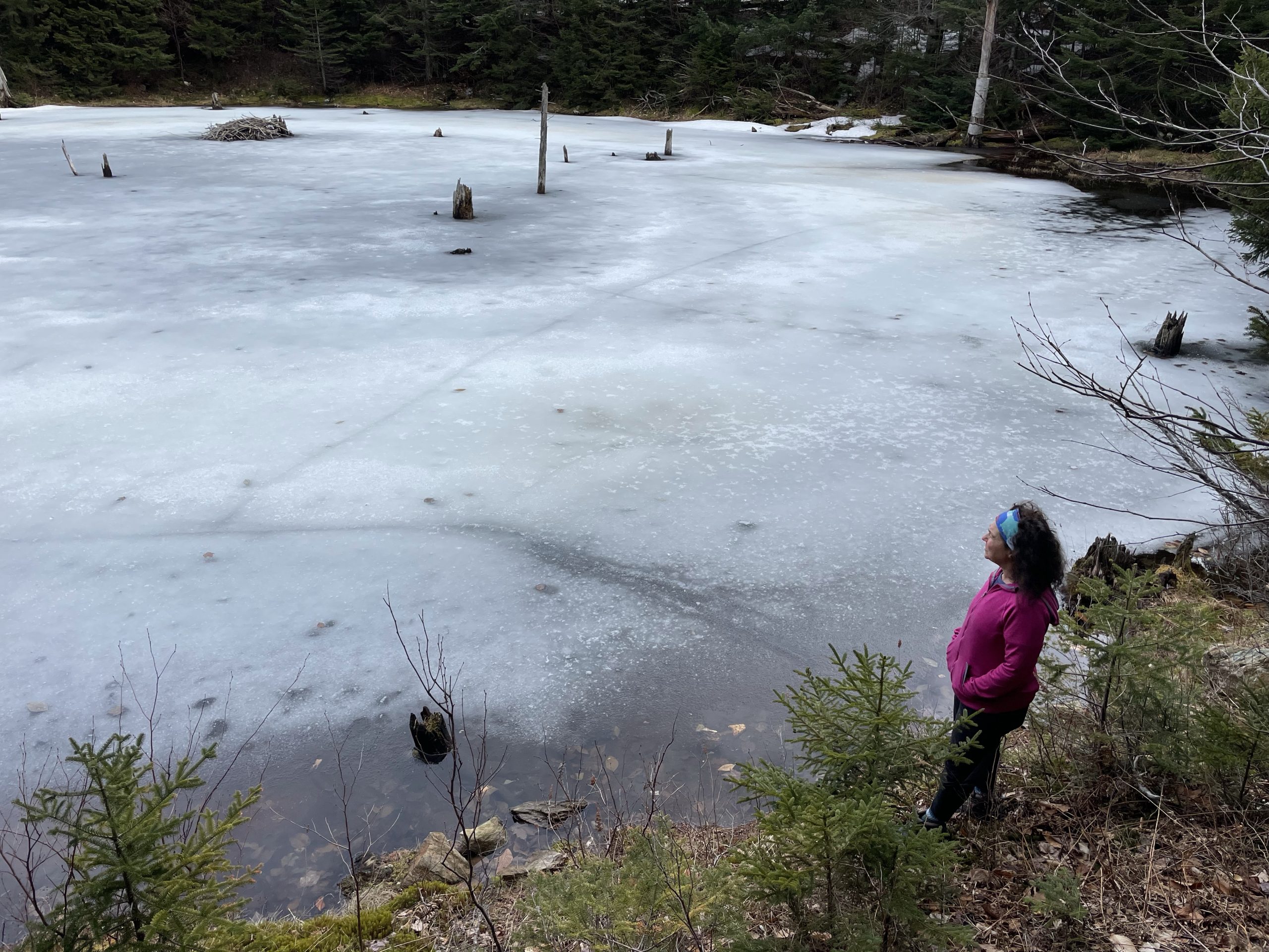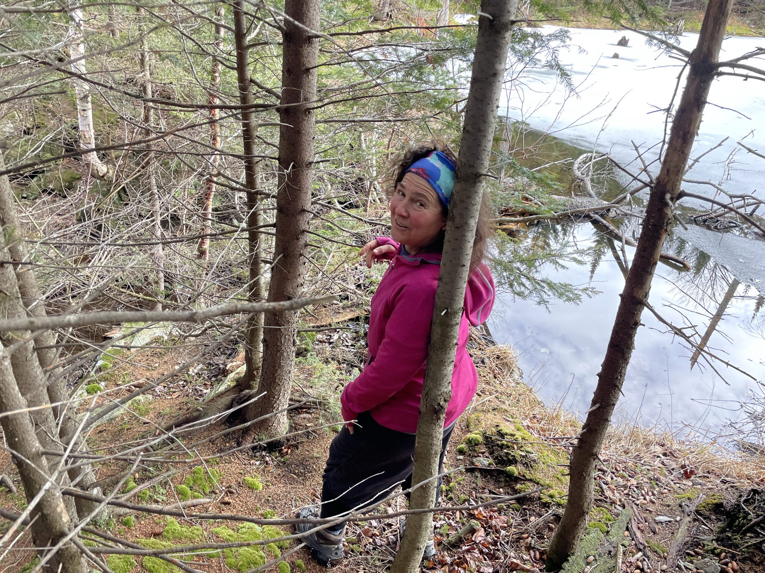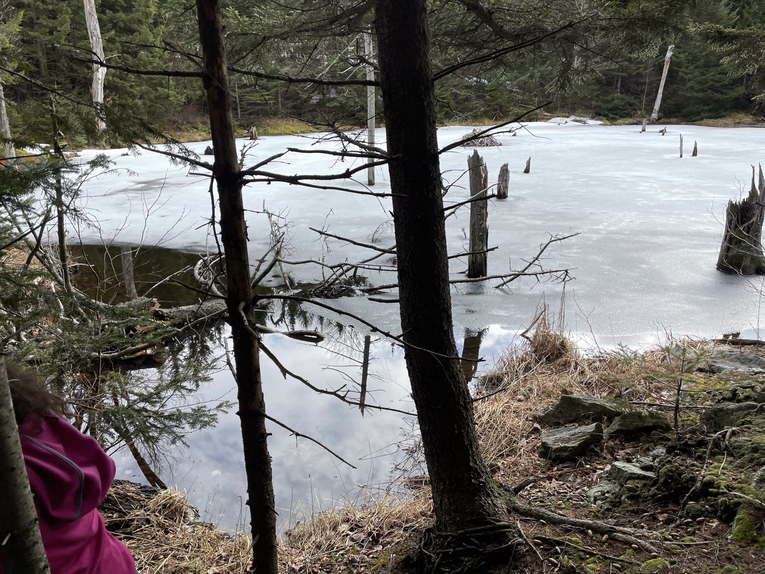 After the brainstorming session I came home and ‘Diane and I decided to go for a hike up a mountain we call “2360”… It doesn’t really have a name… The ones on maps it’s called “Wiley lodge peak” So it’s a nowhere really near where it while we watch used to be.… Anyway… There’s no trails but we bushwhack up to three beautiful ponds That were up there… It was a tough climb but worth it
