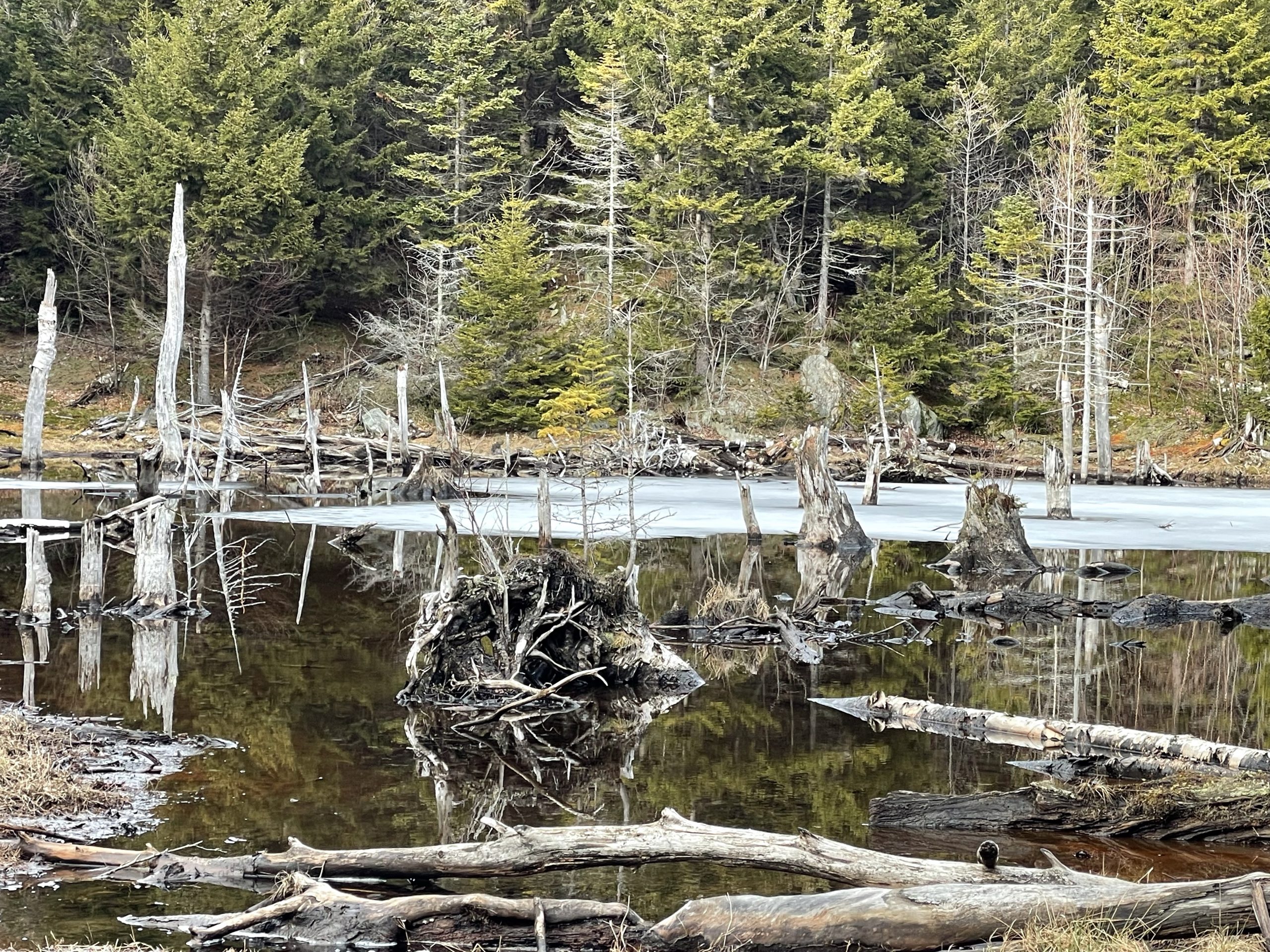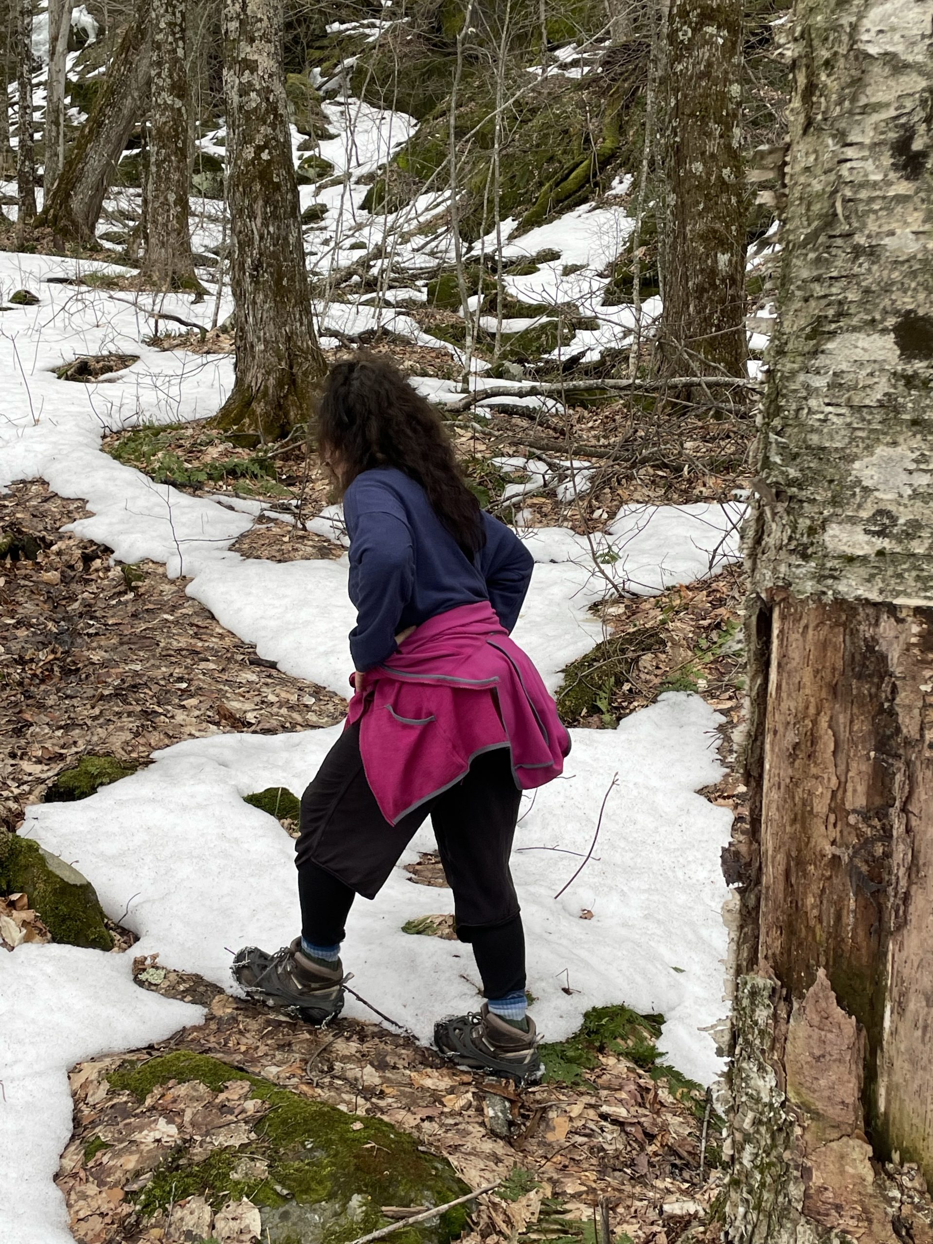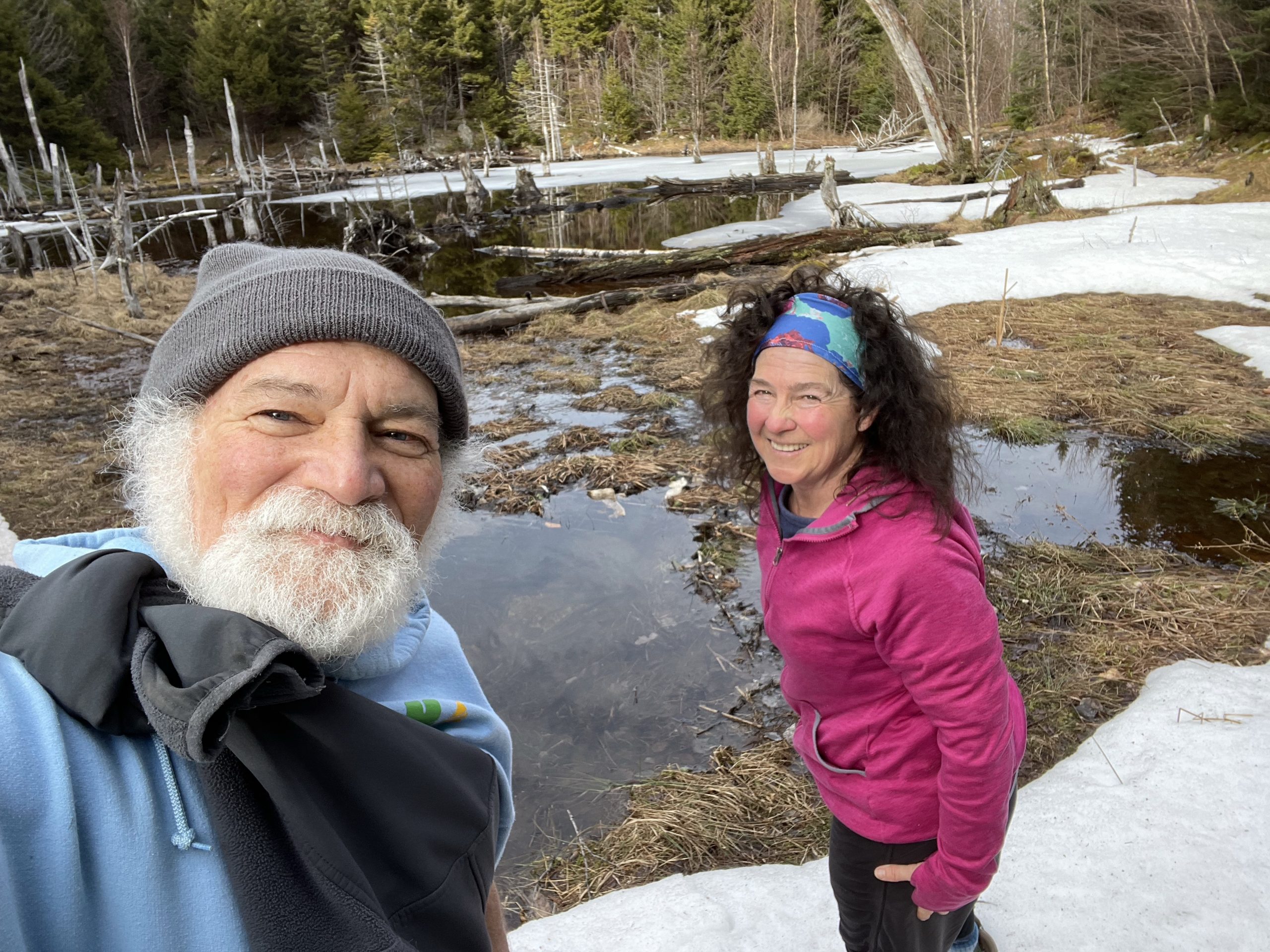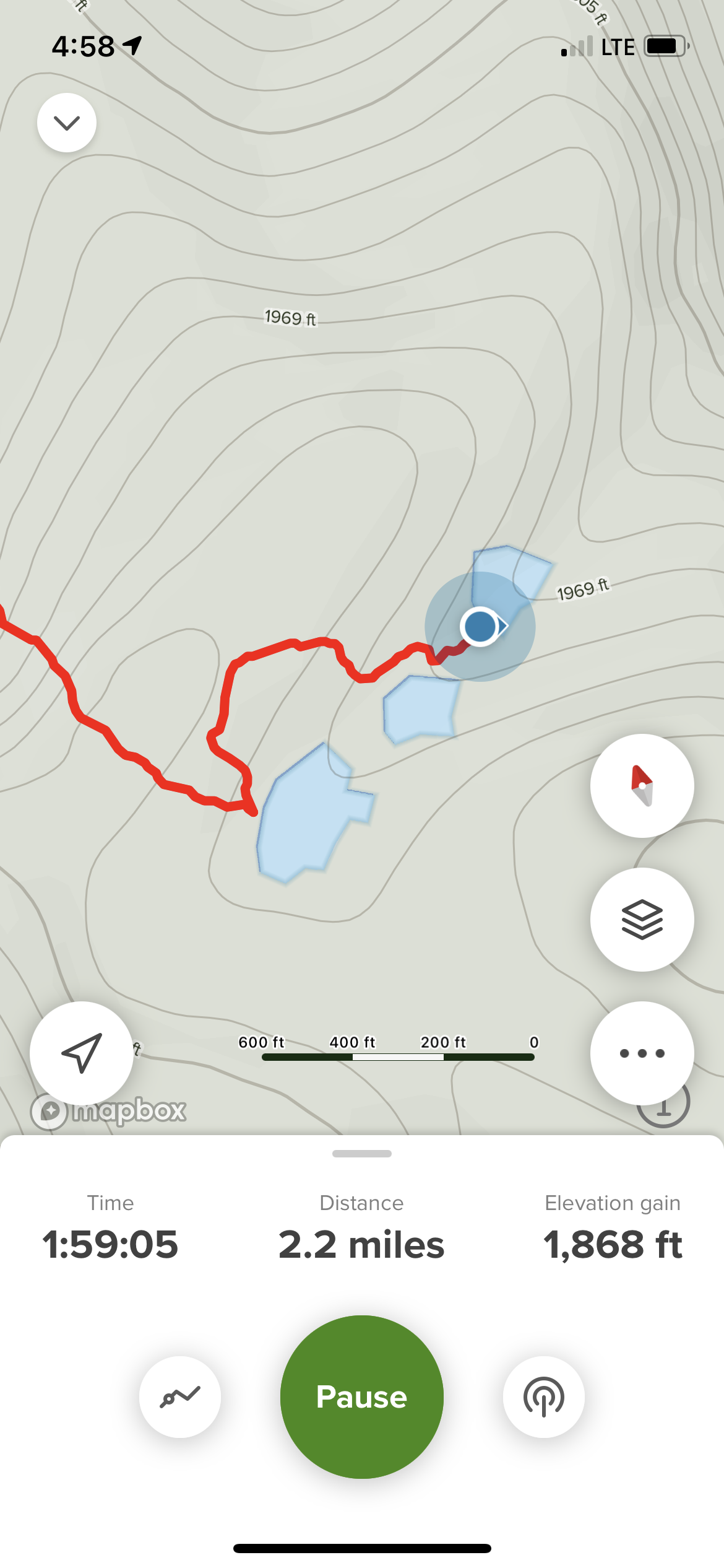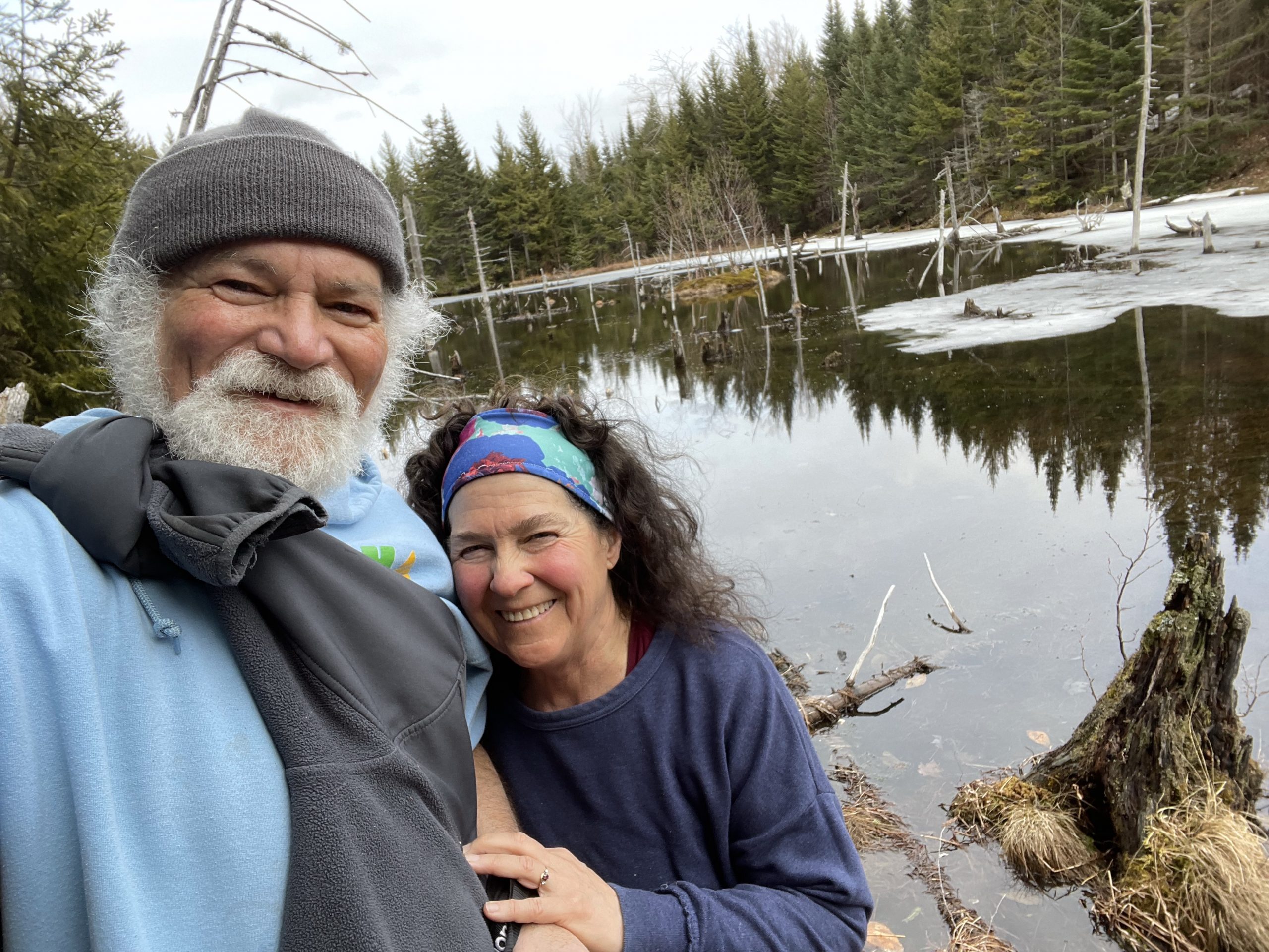 After the brainstorming session I came home and ‘Diane and I decided to go for a hike up a mountain we call “2360”… It doesn’t really have a name… The ones on maps it’s called “Wiley lodge peak” So it’s a nowhere really near where it while we watch used to be.… Anyway… There’s no trails but we bushwhack up to three beautiful ponds That were up there… It was a tough climb but worth it
