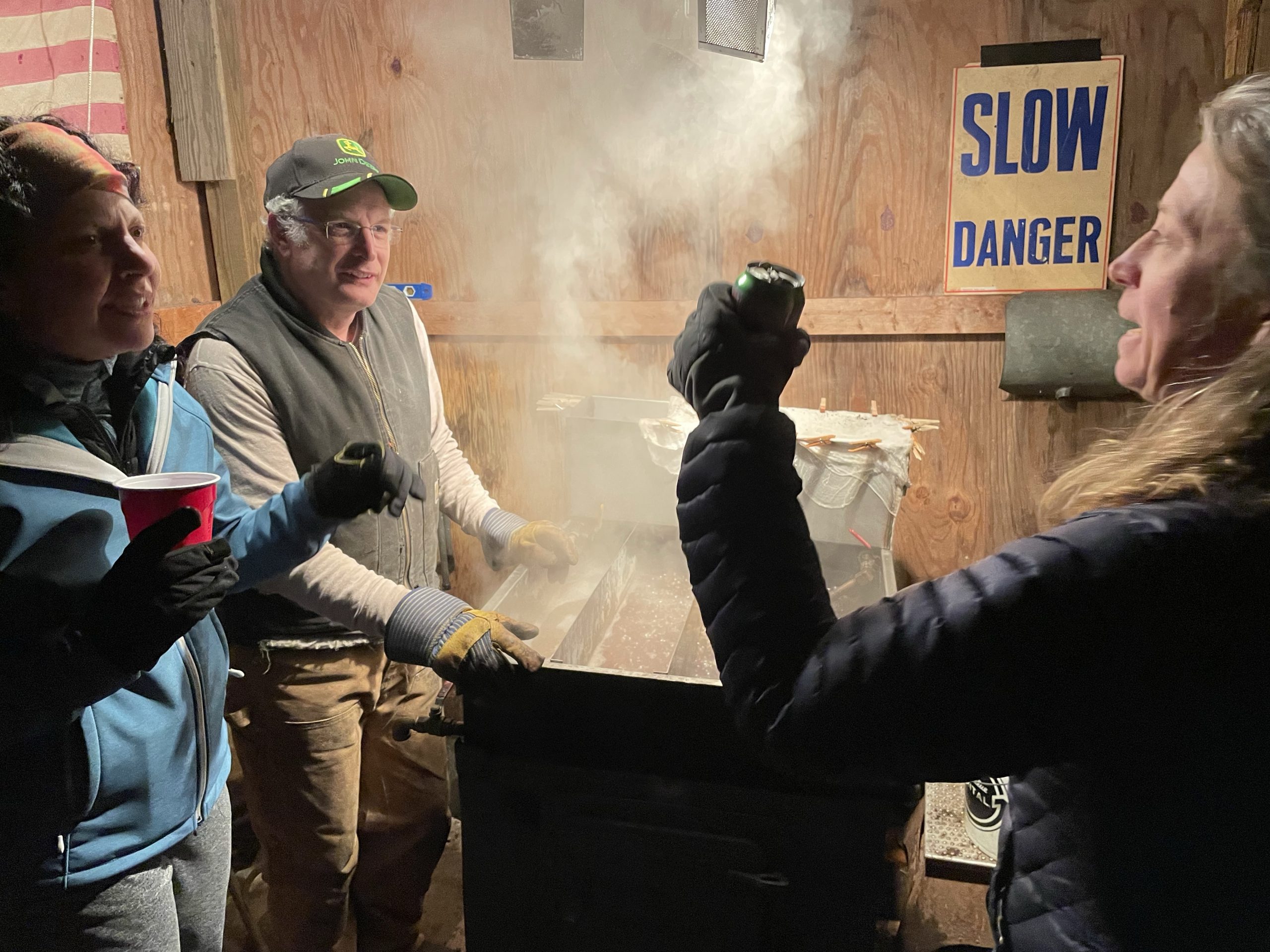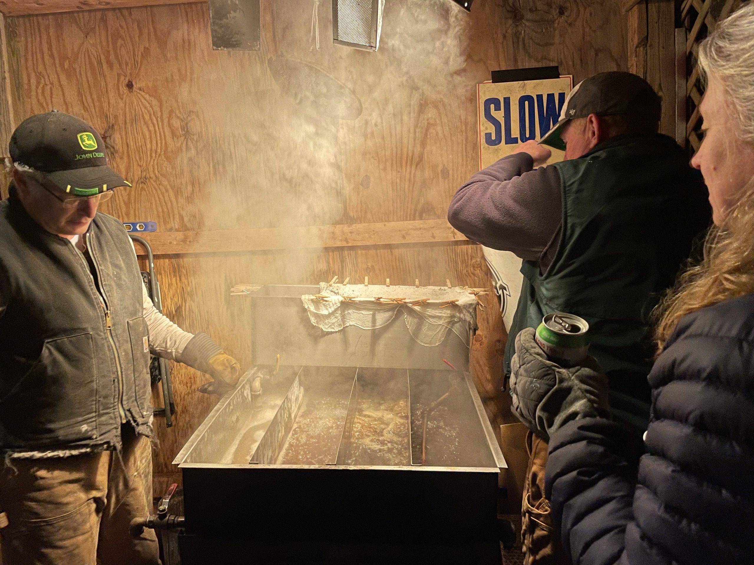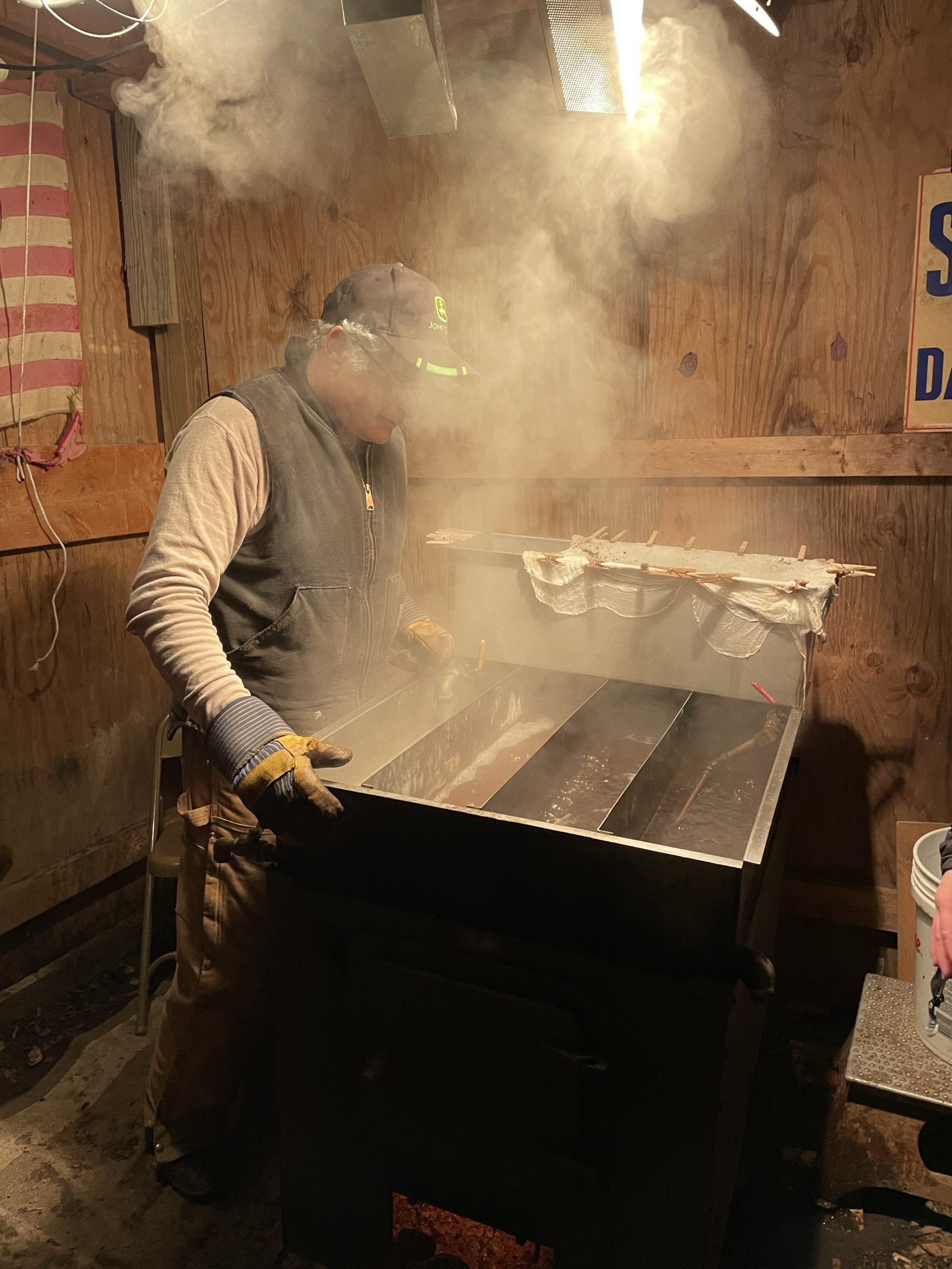 When we got home we were beat… But we got an invite to go to see our friend Carole and Paul’s sugarhouse… Where they were boiling. Got in the car just ordered some pizzas and started driving there… On the way there ‘Diane saw something moving in my beard and pulled it out and OMG it was a tick !!!