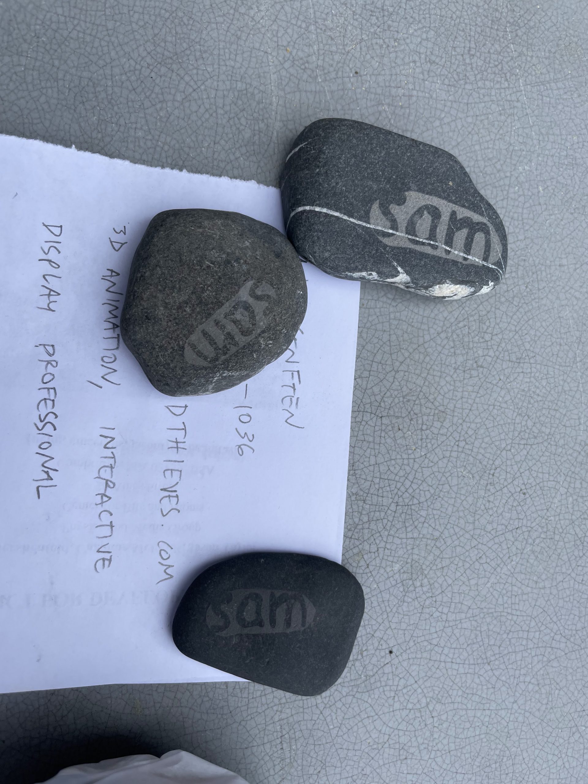 I had a really nice meetup with my friend Elliot this morning before the Generator Safety meeting. Check out what he made for us !.. These are stones he laser etched Sam’s name on.. pretty cool mix of nature and tech !
