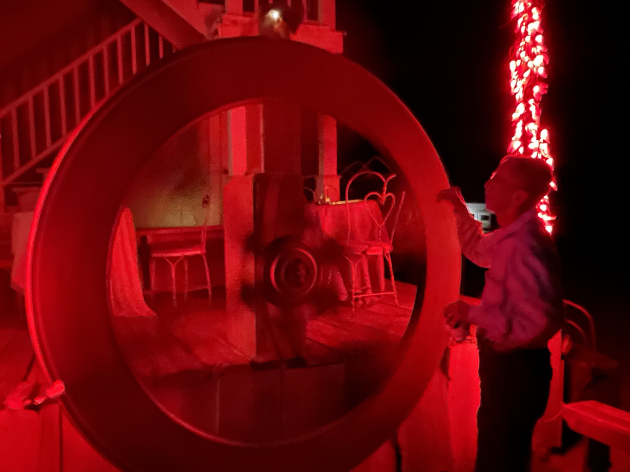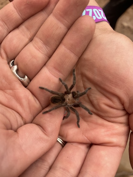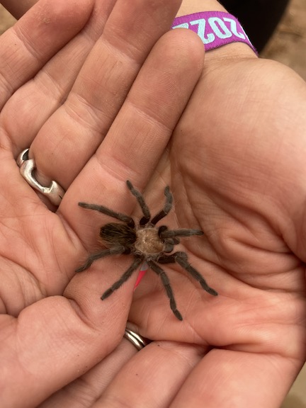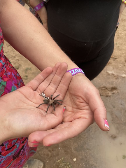 Karen found a tarantula while we were getting the lights and music ready