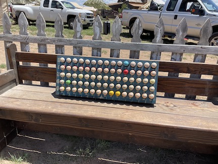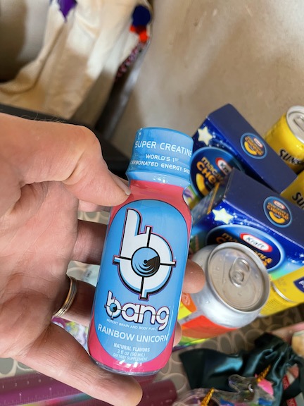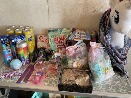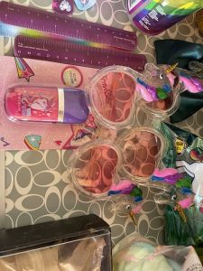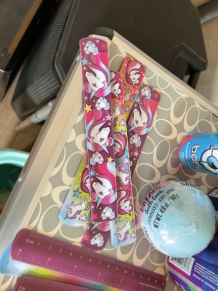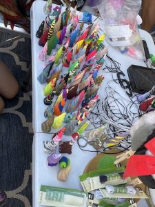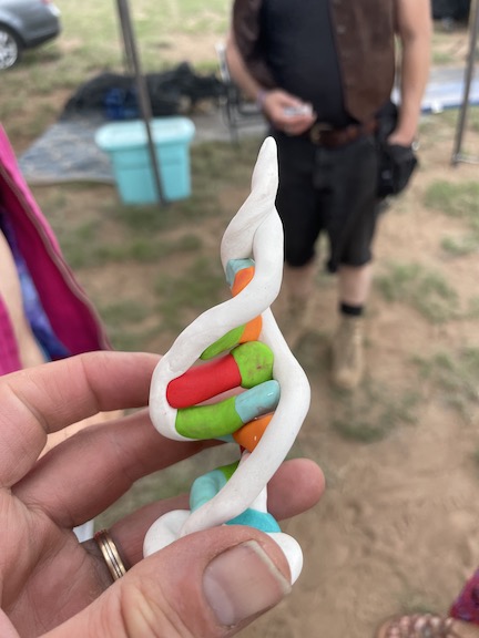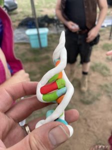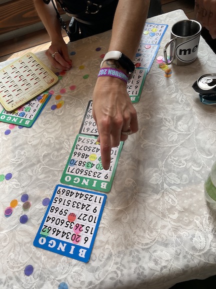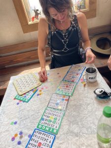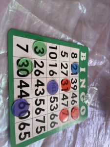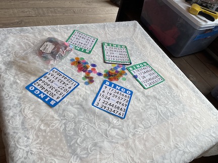 Next came set up for bingo .. Atticus had made custom horns for people.. (Max made a DNA one for Gabe !)
