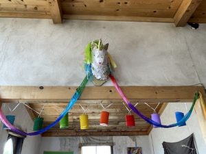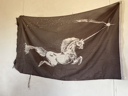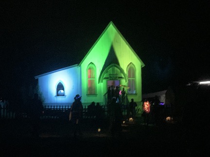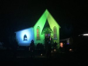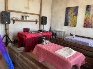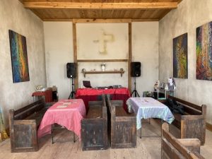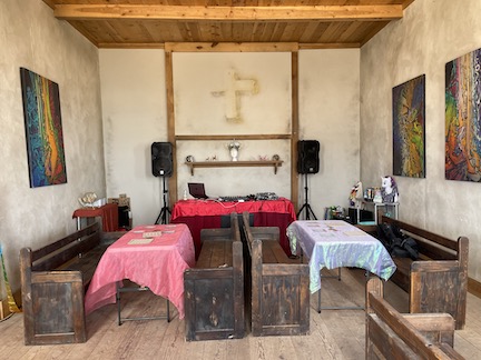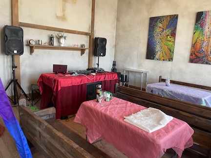 The church is a sweet tiny building.. very clean.. .. or at least it was. We all chipped in to decorate it in F*cking Unicorn themed material. including custom made horns .