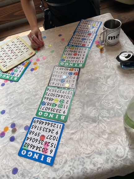 We began prepping the church for the three events we’re hosting today.. First was Dianes ‘pew yoga”. then old age bingo.. then a full on party late tonight