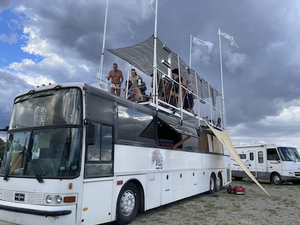 First full day of Sunburn. Gabe flew in about 2:30.. becky picked him up and they came out to Sunburn to meet us. The festival is really nice.. small and friendly in a really interesting venue.. Lots of cool camps.. a few art pieces..a dn several camps with shows/ open bars.. Some wired stuff like naked chandelier wrestling for those who are in to it.. A really great day !
