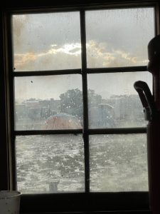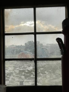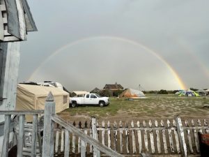 around 4 the skies began to darken and we had a short sprinkle.. it brought a little rainbow.. but not much else