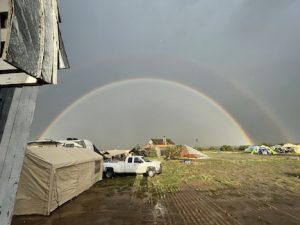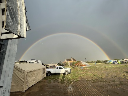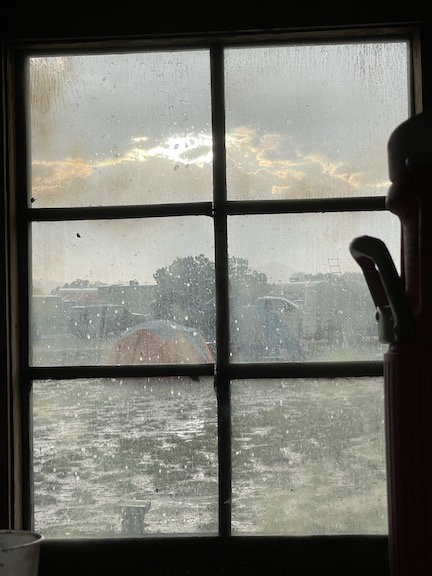 but then it started to Pur.. >. a solid wall of water that turned the ground to 6 inches of mud !.. Lighting all around.. a bolt hit hear the camp. Several folks saw it blow a plume of dirt in the air..
