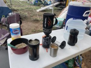 We woke to a muddy mess.. caffeinated and began cleaning up for another day