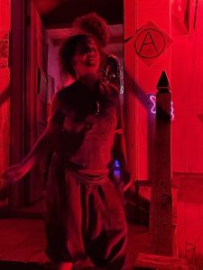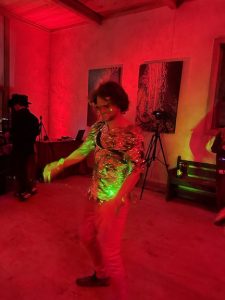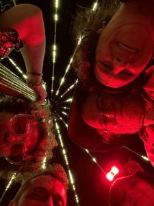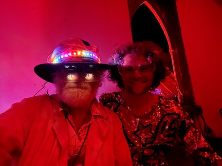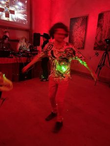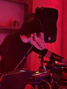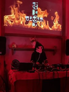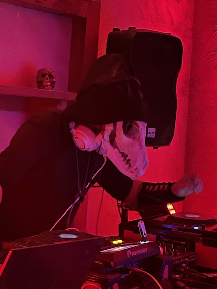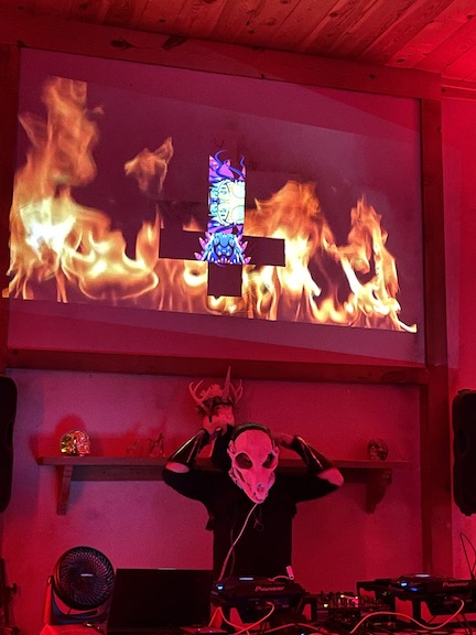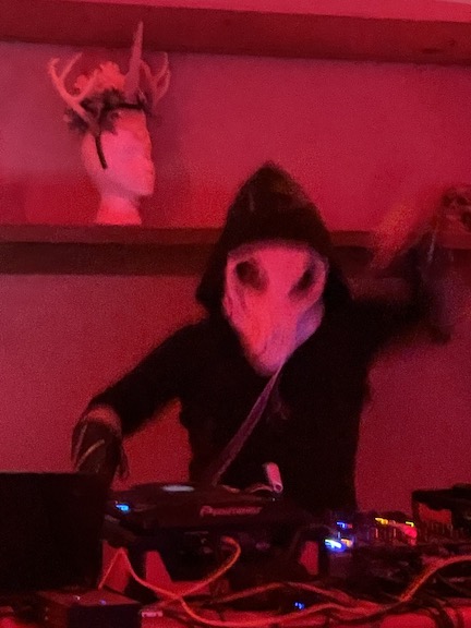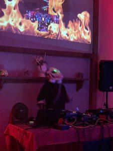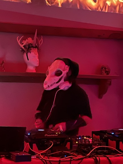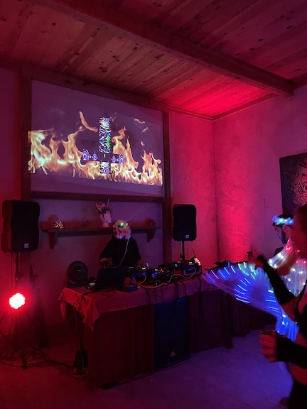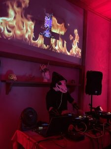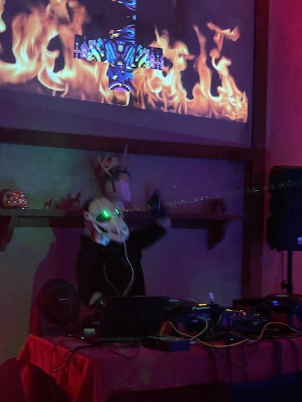 Then Max started DJing at about midnight.. he is soooooo good .. he did all the projection mapping , lighting and was Doing. He wore the 3D printed oversized fox skull with green lasers which he made.. just brilliant !