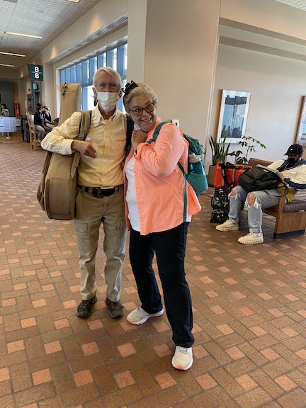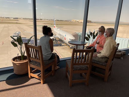 We hitched a ride back to ABQ with George and Doreen thanks for a fun and challenging game of jenga getting all our bags into the tiny rental. Our. planes were within an hour of each other so we grabbed a drink and watched the planes with them..