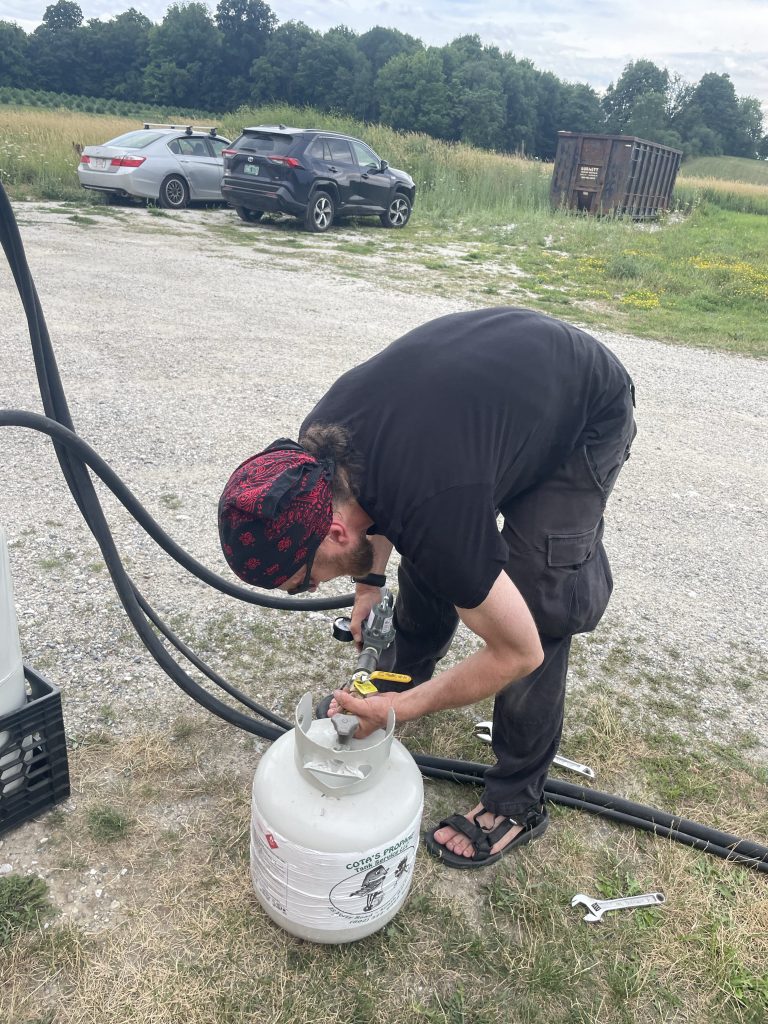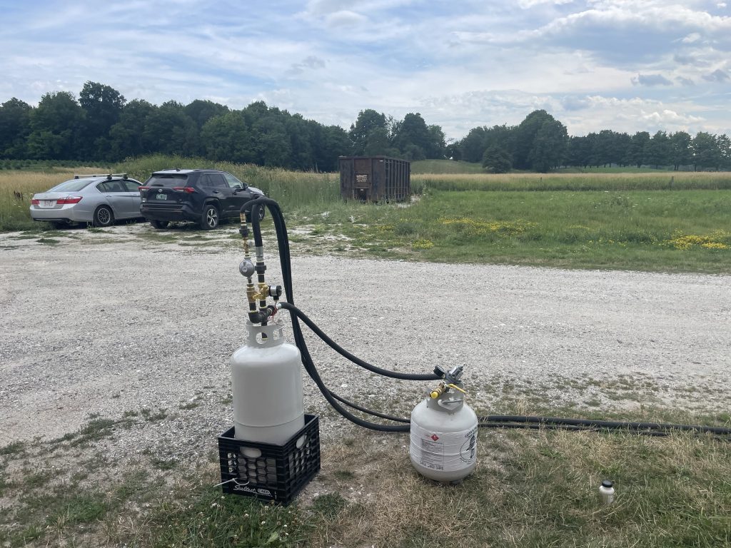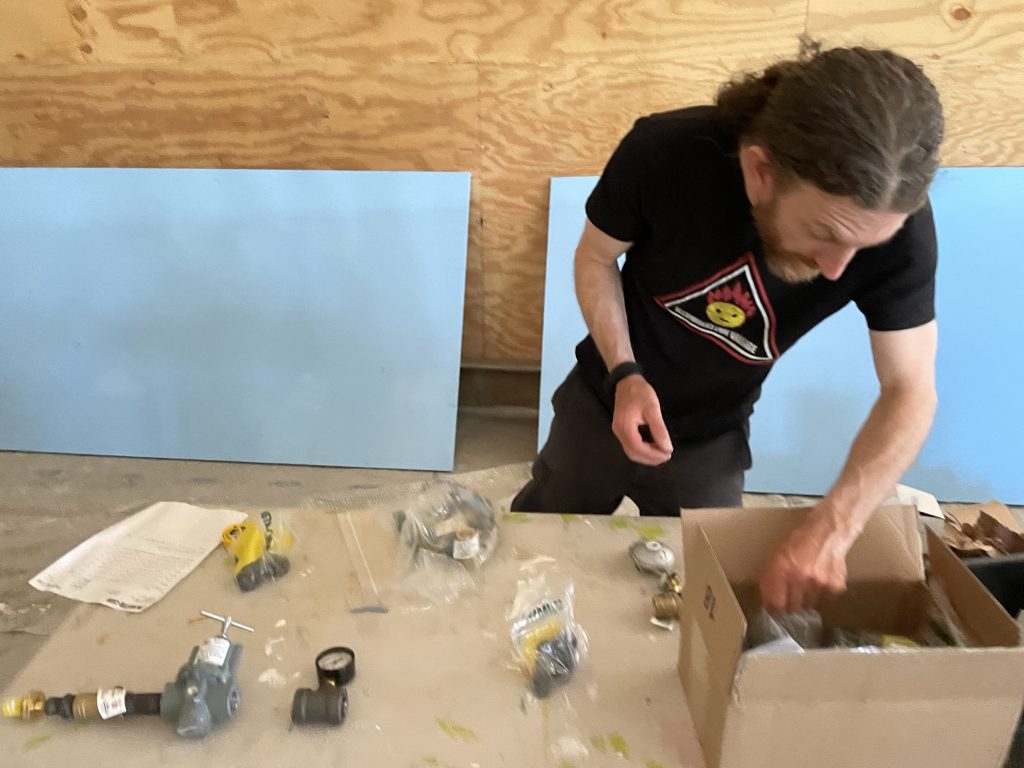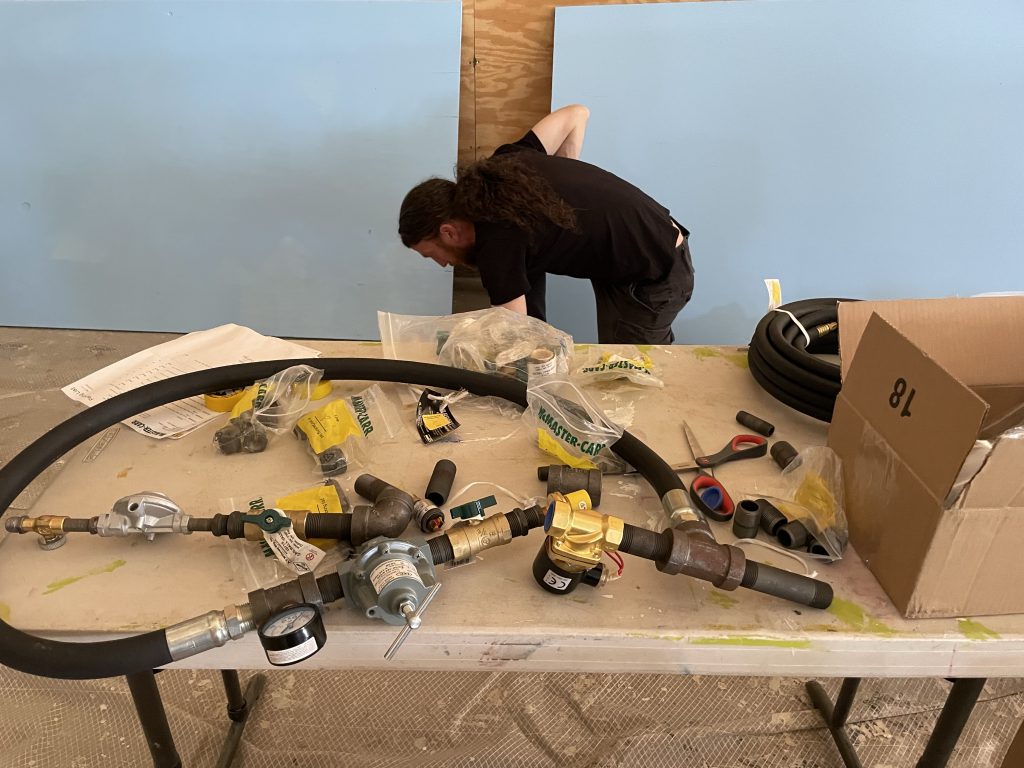 This week was when we really started building the fire apparatus for fluffy our burning man car. I was lucky enough to be able to call in my friend James from Boston who came up for 2 1/2 days to review the design that chris and I had come up with And check out the parts that I already ordered. Our goal this week was to actually prototype the system which was key to the success of fluffy. I very much appreciated James making the trip up. We would really not have been able to do it without him
