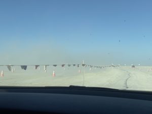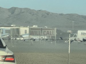 the ride out to the gate was amazingly fast… About an hour and a half from Reno… But then we got hung up at the gate temporary closed the entrance. We got our tickets and Duane very kindly drove me in to our camp. That was no small tasking given the sandstorm… But eventually he was able to drop me off say hello and then head straight back to Reno. That’s a long hard drive back especially with a sandstorm blowing.. but he did it and will always appreciate that given all else he had on his mind !
