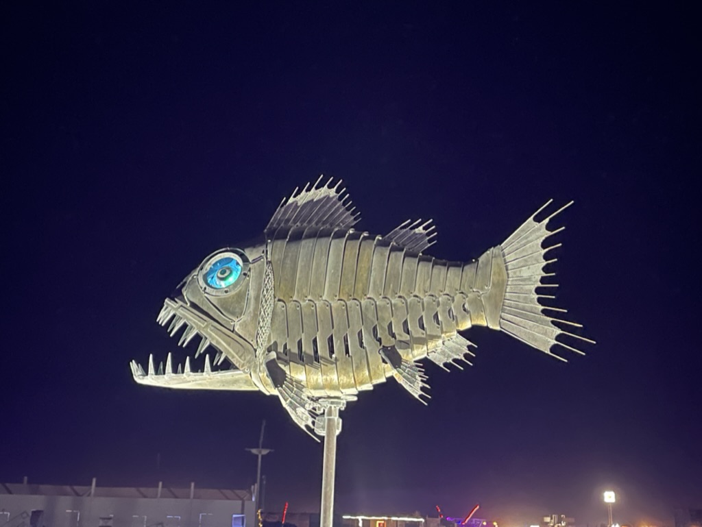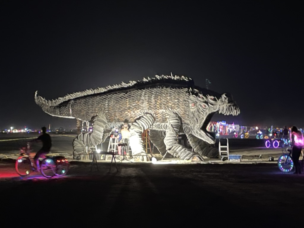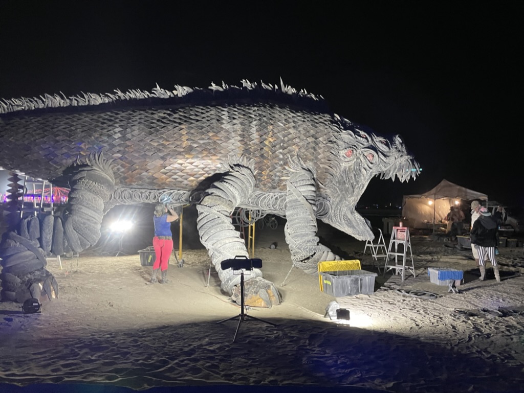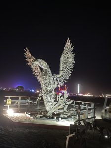 Eventually found Becky but never ran into Max at night…. beres the peice they were helpign with.. it’s called the Fera Beast.. and its amazing.. made out of steel and tires..