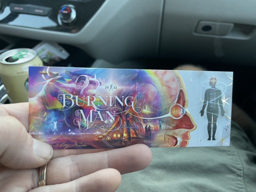 while we were packing I had sort of an epiphany.. I realize if I got out to apply today I could actually go work with Max and Becky other project and still see a little bit at the Bernie name before I had to go. It turns out that Duane had to drive to Black Rock to pick up some will call tickets not just for me but for a bunch of other people who have to go the next day during Introdus. Getting them today before the pie was officially open which save countless hours the next day… So Duane seen my eagerness to go and see Max and the benefit of picking up these tickets agreed to take me to 90 miles to the choir and drive back on his own. What a guy with all he has on his mind. Anyway I quickly gather my gear I borrowed a sleeping bag and other essentials.. and we took off for the playa..