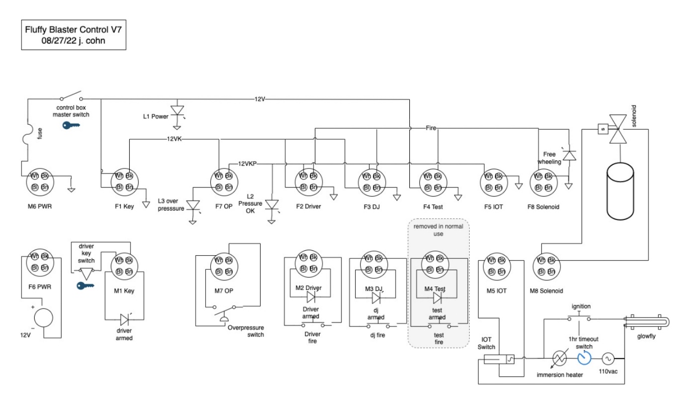 That took about 2 hours then we did fire School .. I had to prep the fire folks for the registration process at the department of mutant vehicles (DMV) where they safety inspect the fire elements. I’ve built a bunch of fire devices, but never had to go through the approval at burning man. They can ask you anything about the component ratings, fires protocols, failsafes, etc.. i have heard many horror stories of cars being turned away for not passing their fire safety tests.. and didn’t want that to be us !