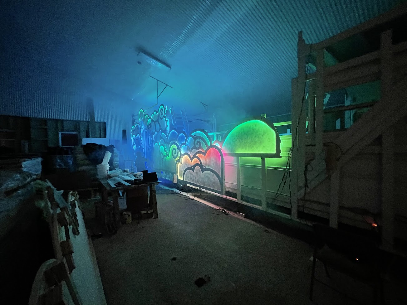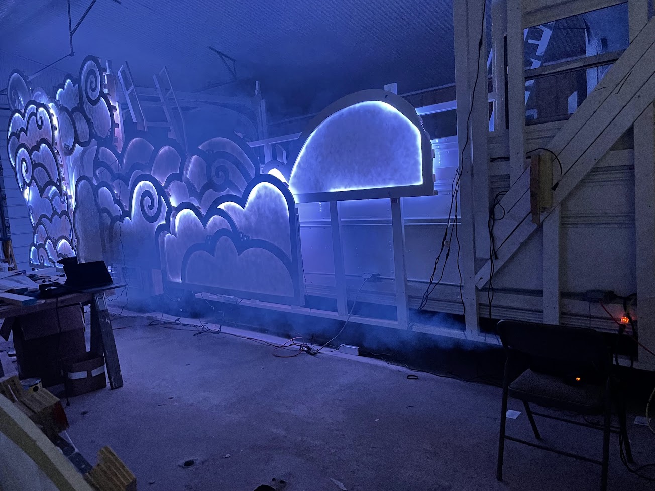 today was a big day for fluffy.. there was a public demo of everything we had working.. fire, lights, music,etc..