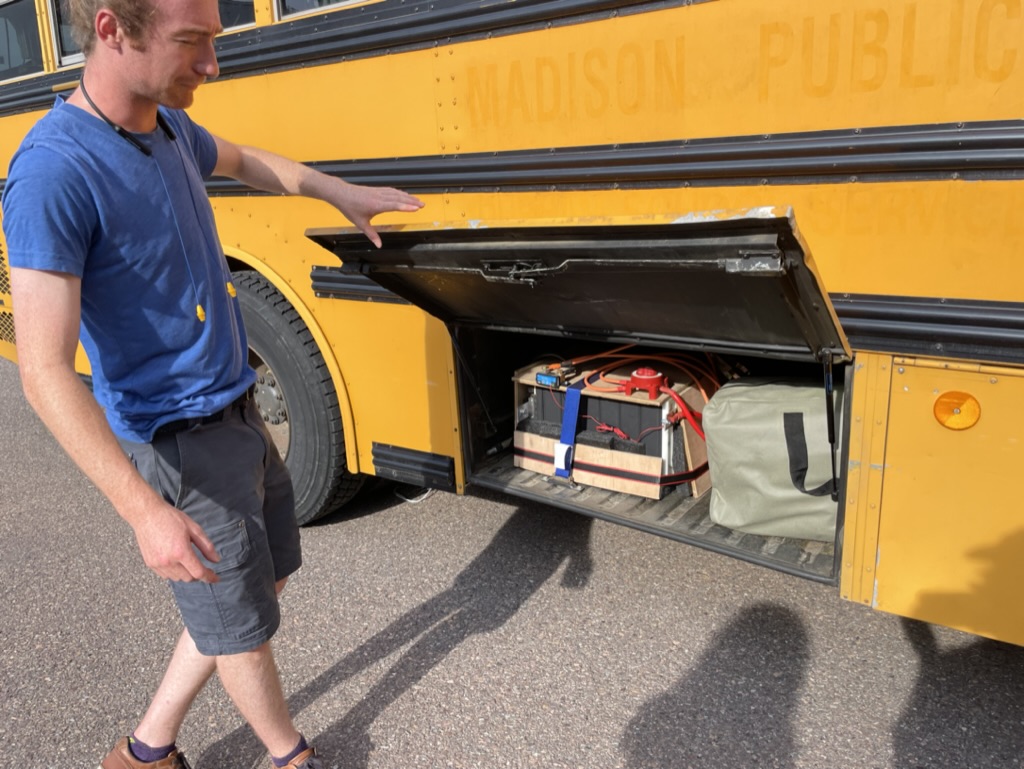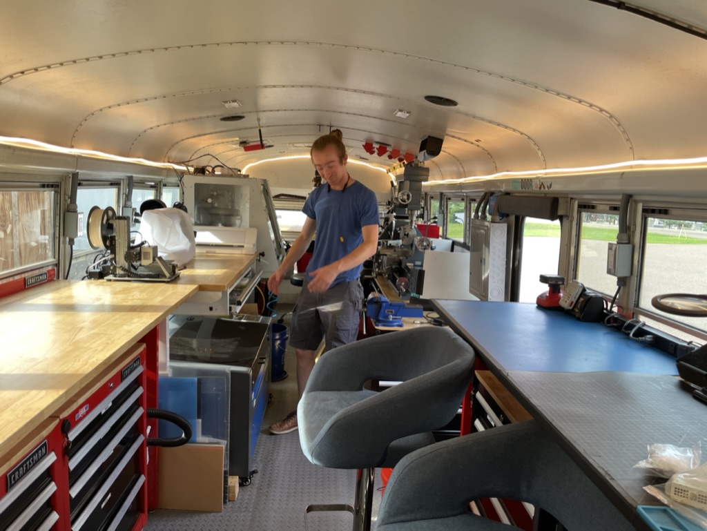 On the way to Nordic, we stopped by BETA D1 to take soem measurements on FLuffy. We ran into my friend Aimee who is an intern ant beta and an AMAZING inventor. We got a tour of his tool bus which includes solar panels, a huge inverter and an old alia battery to power everything, starlkink internet, a heat pump, a cnc mill, a laser cutter a 3d printer and a ton of tools.. Pretty sweet ride !