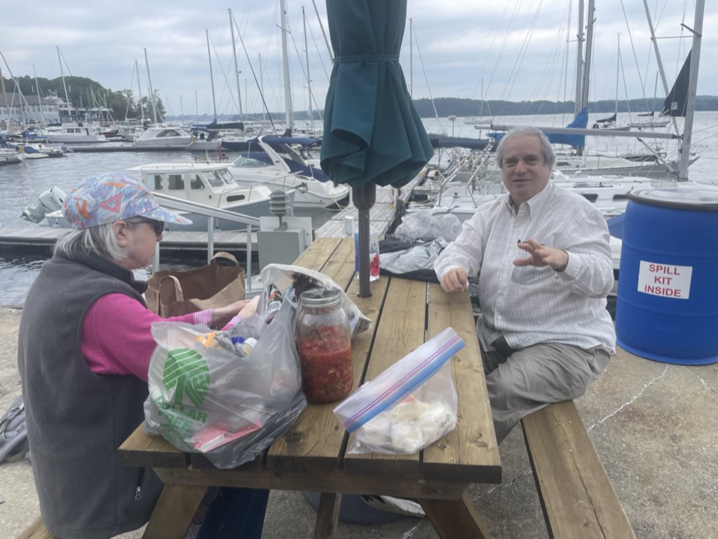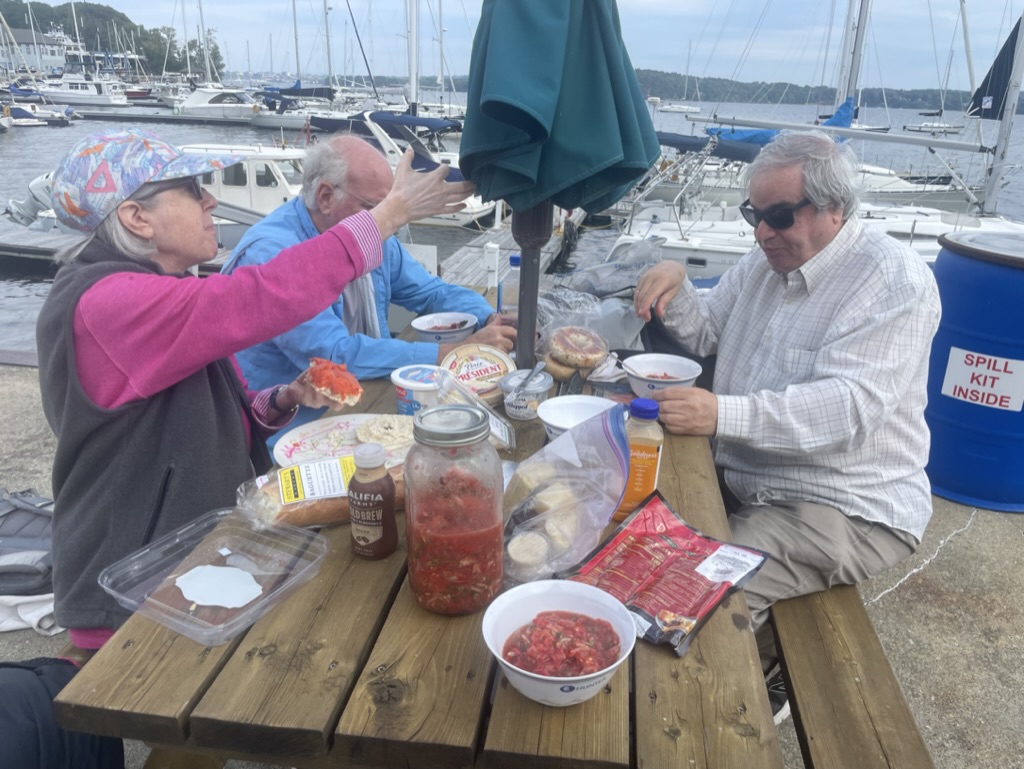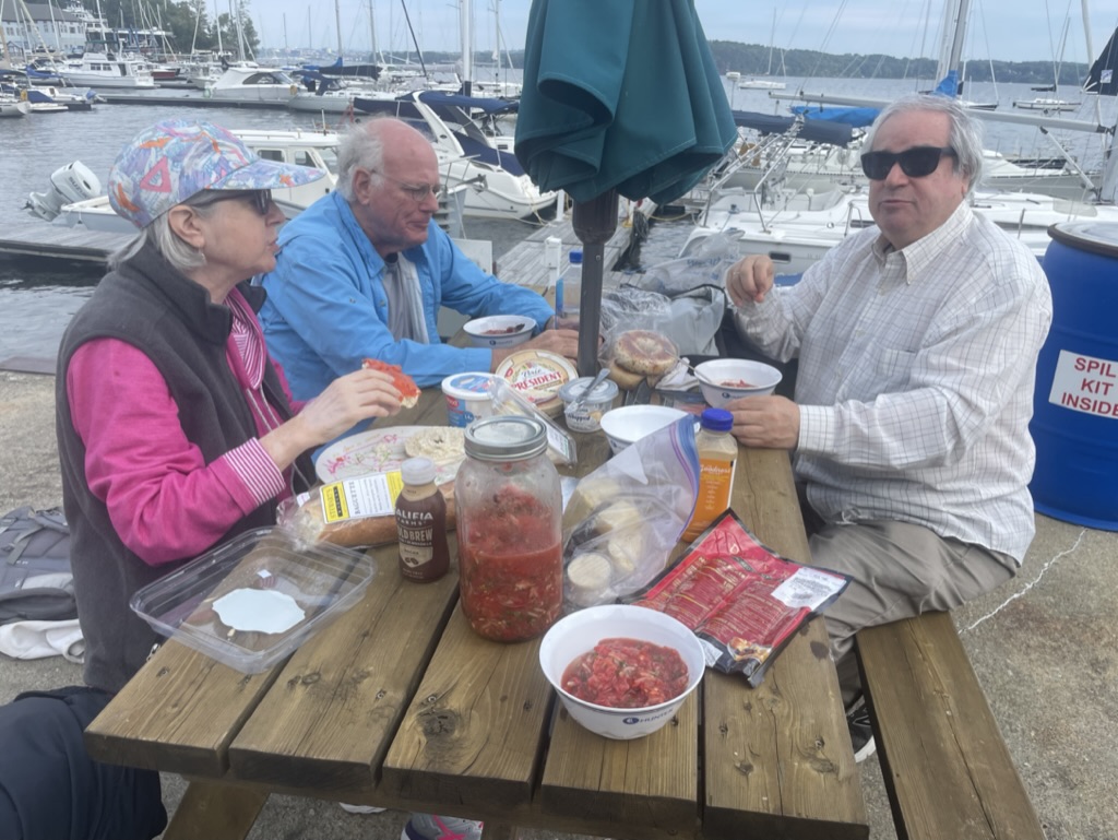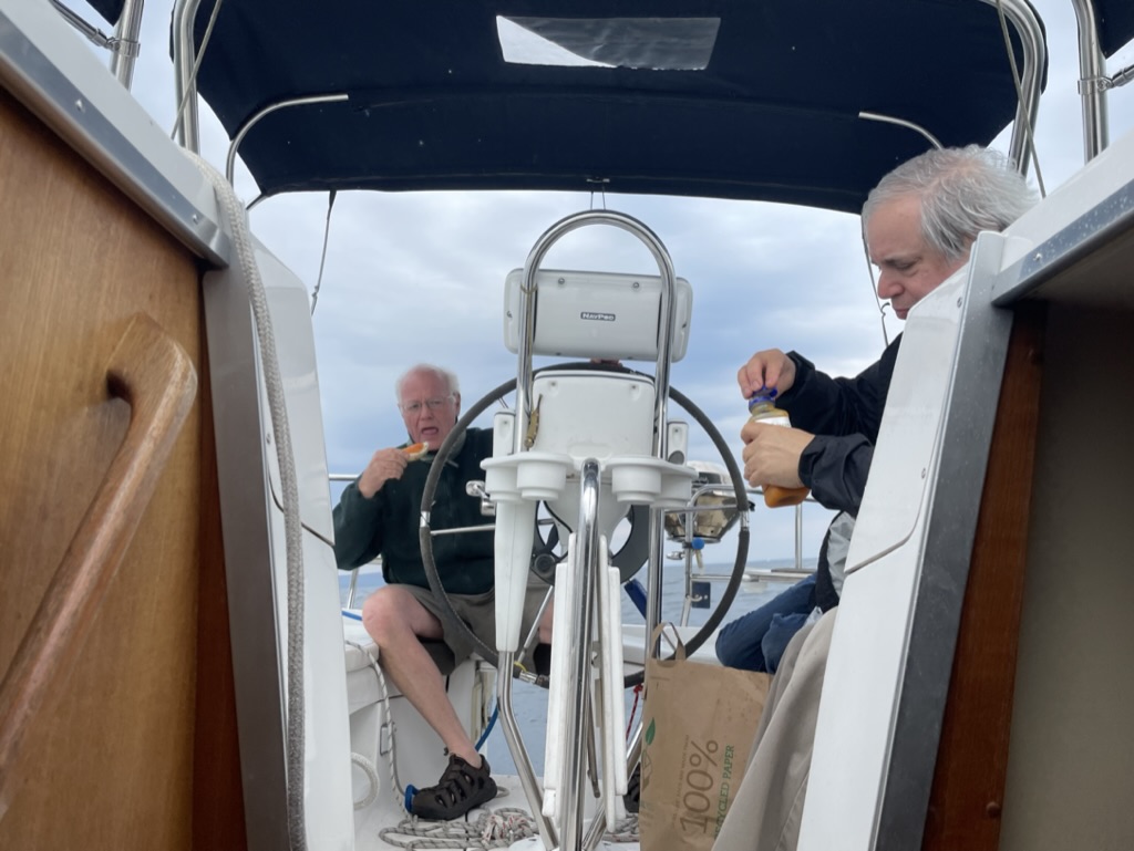 Nice day.. started with a sail with Ben and his old friends Ronnie and Sandra. So nice meeting them. Ronnie and I helped Ben with the ropes. I think I’m finally getting the hang of it ! We came back in early to eat because we were all getting a little queasy. Sandra and Ronnie are so great ! Super fun morning.