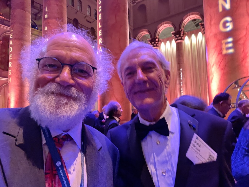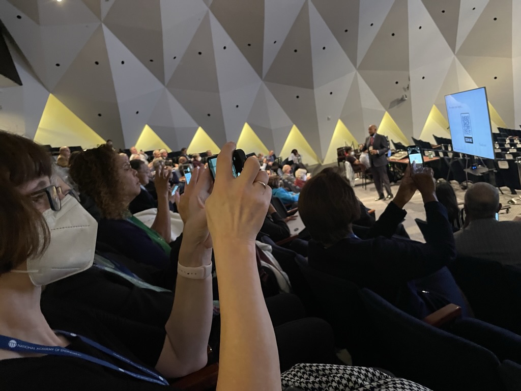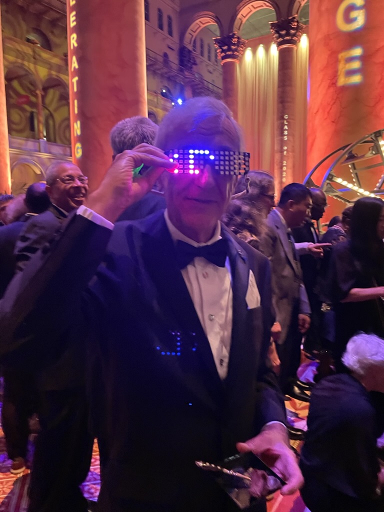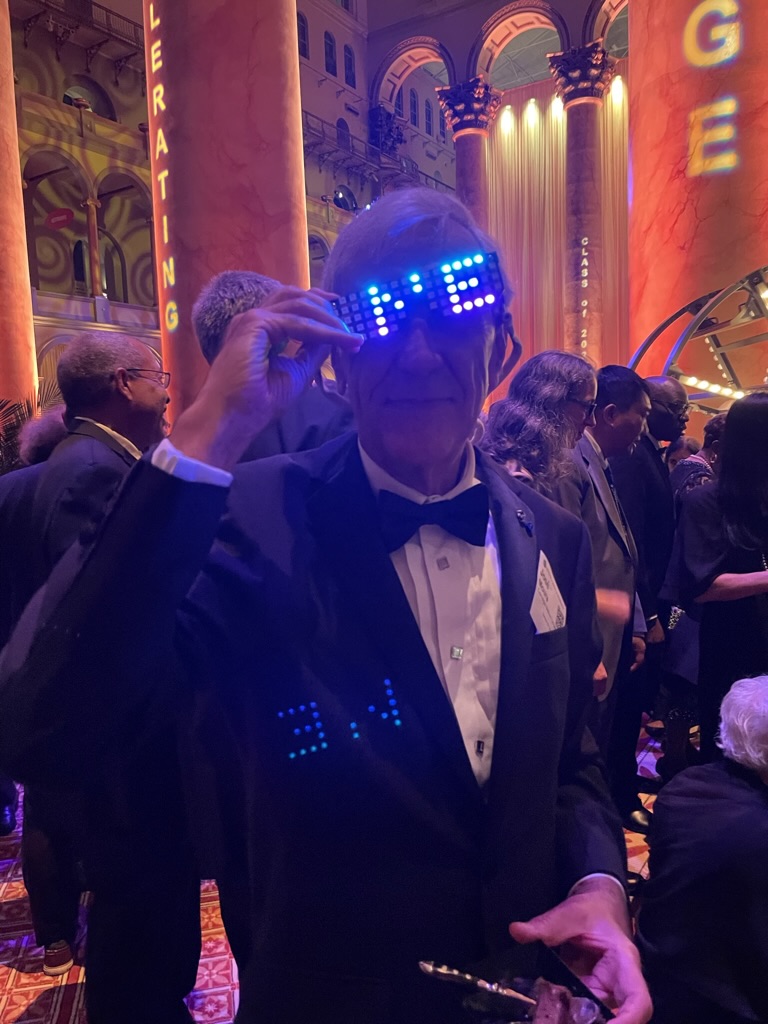 Tonight’s event was really fun. There must’ve been about 900 people there. That included the new inductees, their significant others, and a group of senior people from the Academy who were there to welcome us. The place was decorated really nicely everybody was all dressed up… Most in Tuxes (but not me)… And it was fancy fun drinks… In a very sciencey theme. It was really great getting to see everyone and meet their partners.… We sat at a table with two new inductees one from UCLA with his daughter, a couple from Rice University and my old friend José with his granddaughter. It was really nice being there with your day and his family but we continue to bump into all weekend. They were really fun !