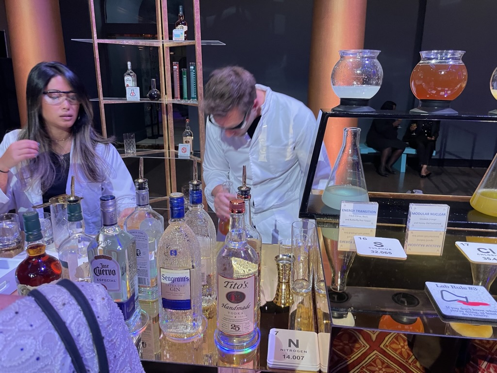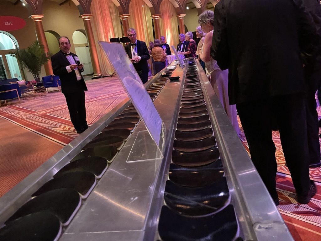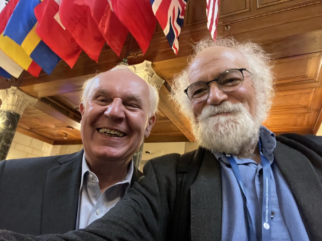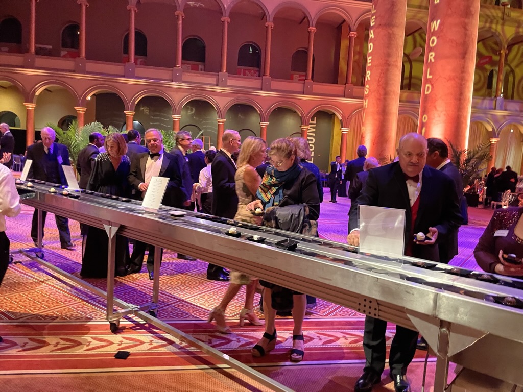 Tonight’s event was really fun. There must’ve been about 900 people there. That included the new inductees, their significant others, and a group of senior people from the Academy who were there to welcome us. The place was decorated really nicely everybody was all dressed up… Most in Tuxes (but not me)… And it was fancy fun drinks… In a very sciencey theme. It was really great getting to see everyone and meet their partners.… We sat at a table with two new inductees one from UCLA with his daughter, a couple from Rice University and my old friend José with his granddaughter. It was really nice being there with your day and his family but we continue to bump into all weekend. They were really fun !