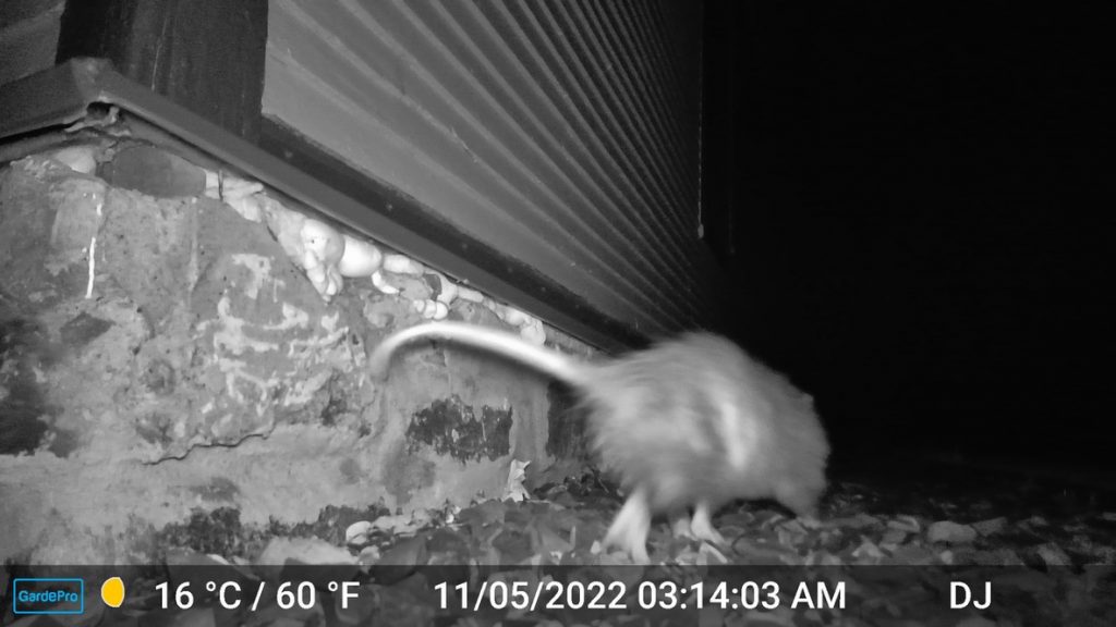 I mentioned a few days back that we are on a mission to reduce the number of mice that get into our house. That includes ‘Diane getting even more aggressive about filling every tiny hole in the foundation of our house… As monitoring the outside the outside perimeter with our game camera, and Diane sprinkling red pepper all over the sill. Today we added something else… We now have these small boxes that are solar powered and when they sense motion they send out aloud ultrasonic sound and flashlights… The idea is to scare animals away… I think our friend a possum didn’t like it much.