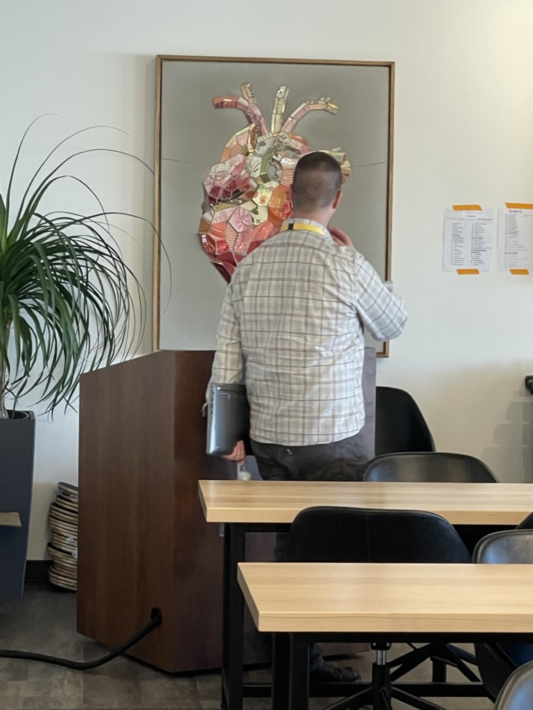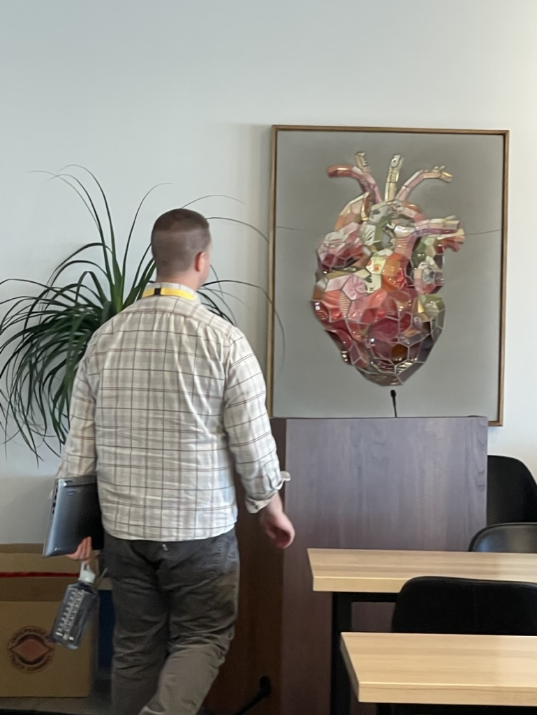 Fun day at work… A friend Kevin now on day two… It was fun to see the place through his eyes. Kevin what is one of sam’s best friends… I took him up to see our friend Mary’s wonderful heart music that has a small Samstown fragment in it… Kevin really liked that