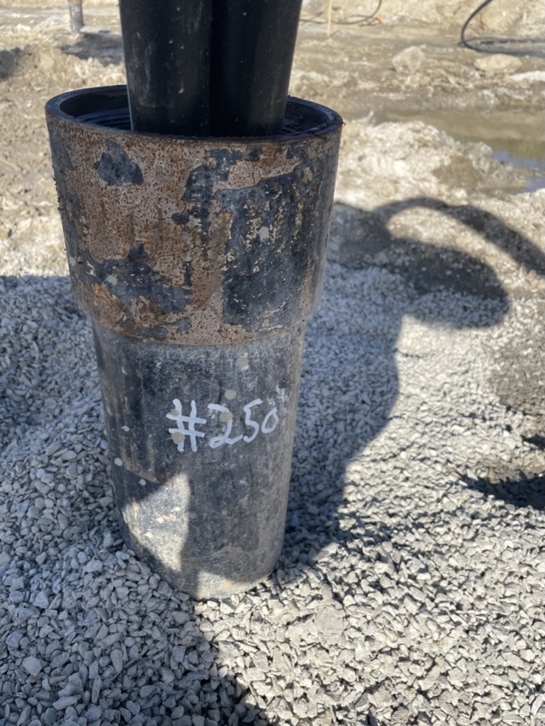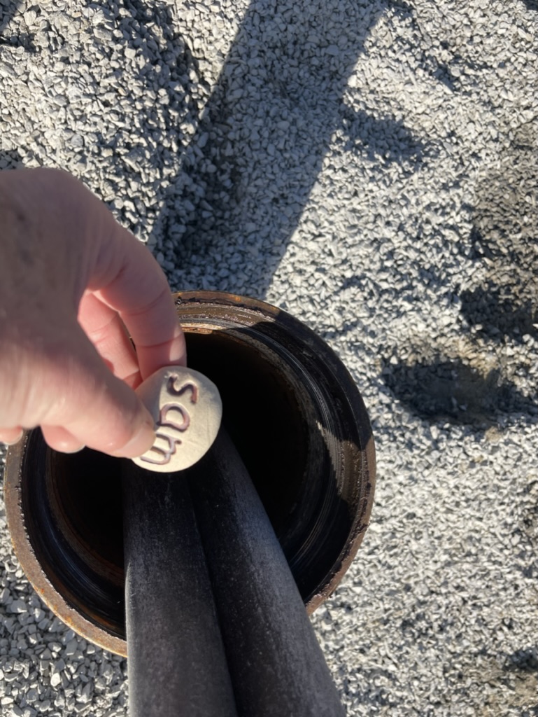 I was thinking of Sam when I got an opportunity to tour our new building that’s being built near the airport.… One of the features of the building is geothermal heating and cooling. There are several hundreds mole wells that go deep in the earth to help heat and cool space.… one of the workers gave me permission to drop a Samstone down over 200 feet in well number 250