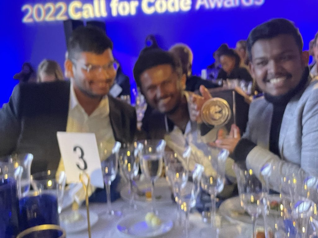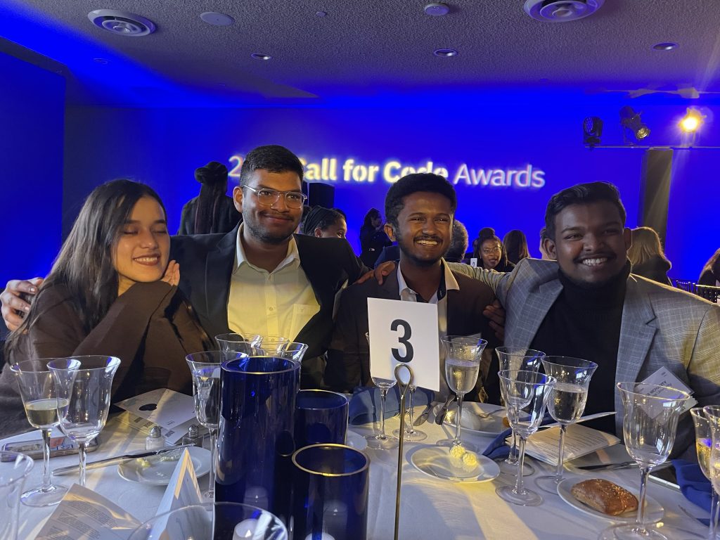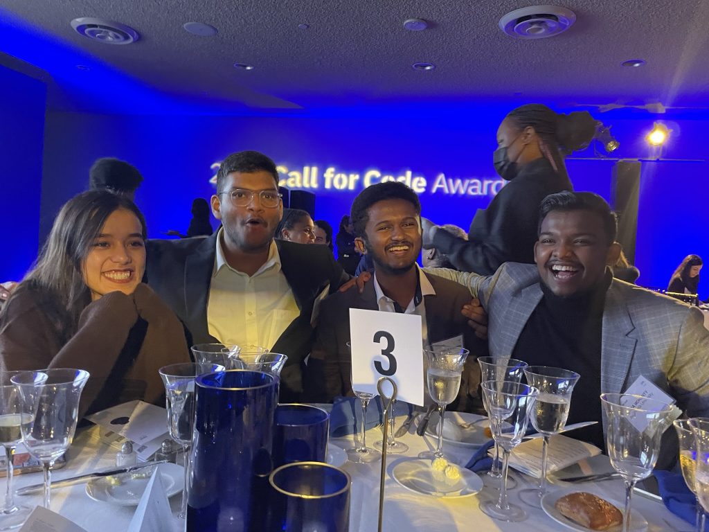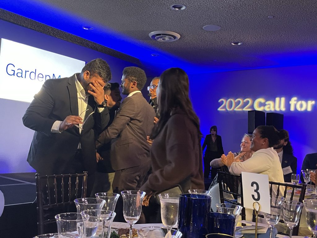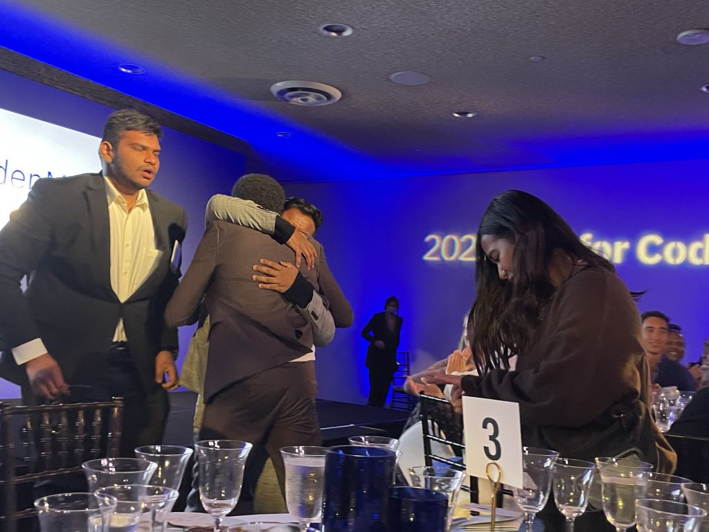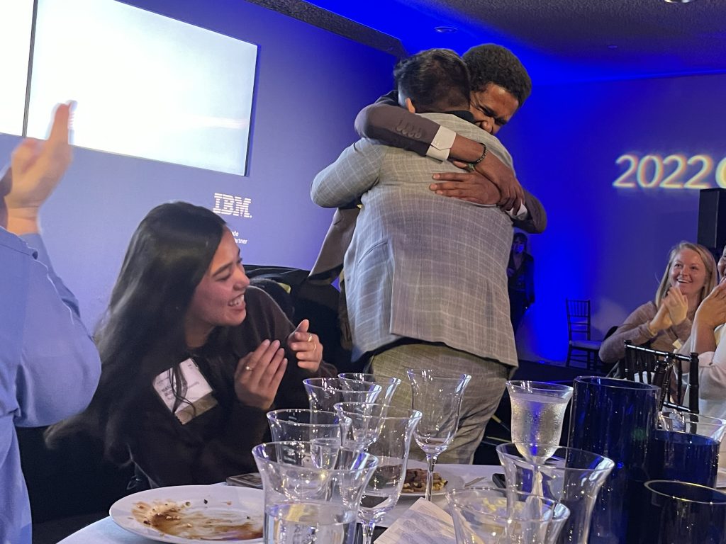 Then the 2nd place winner was announde.. they were several tables away.. it took a few moments to register but then the other team at our table realize that they were the 1st place winner. They were getting eh $200K and the technical help to develop and deploy their solution in the real world. When it hit them , they all jumped up in tand started hugging each other.. some of them were crying they were so happy. i The team were all international students from Augustana University in South Dakota..Two of the team members were from India, One from Ethiopia and one from Nepal. t was so wonderful to see their joy !