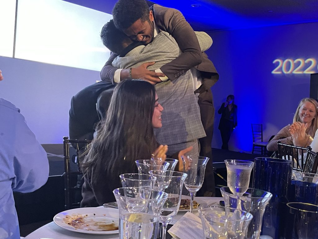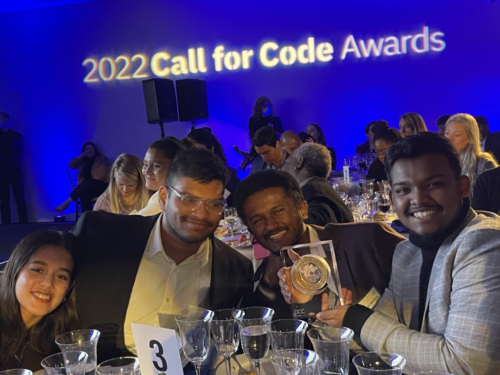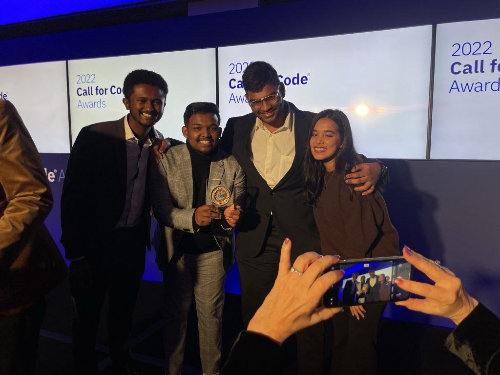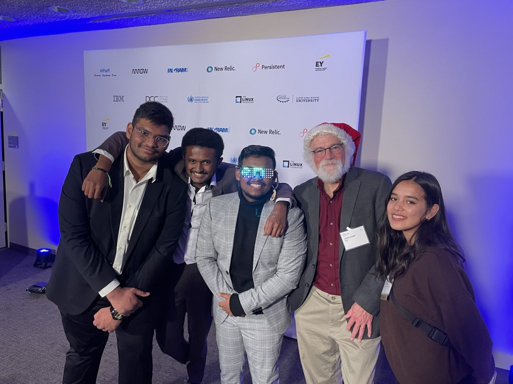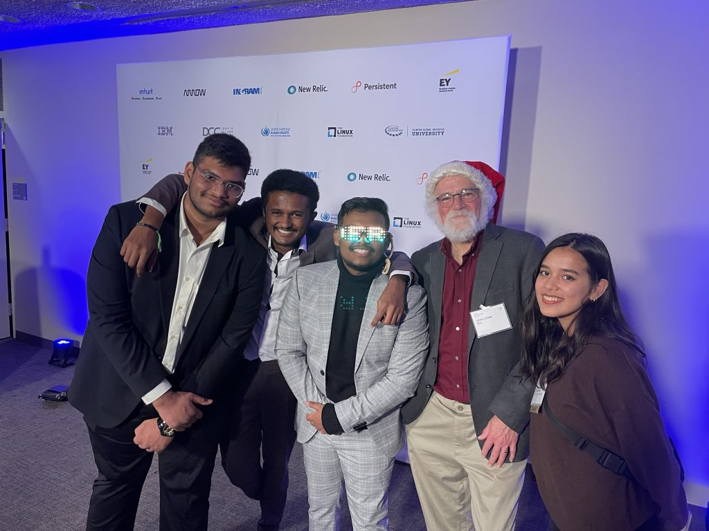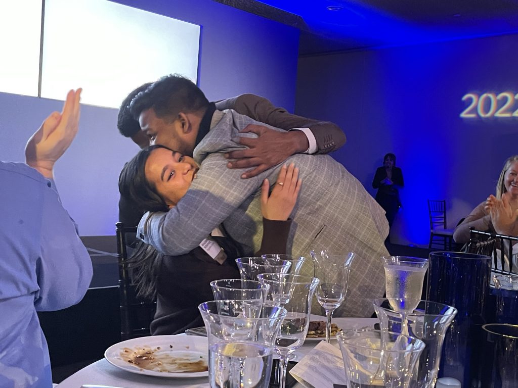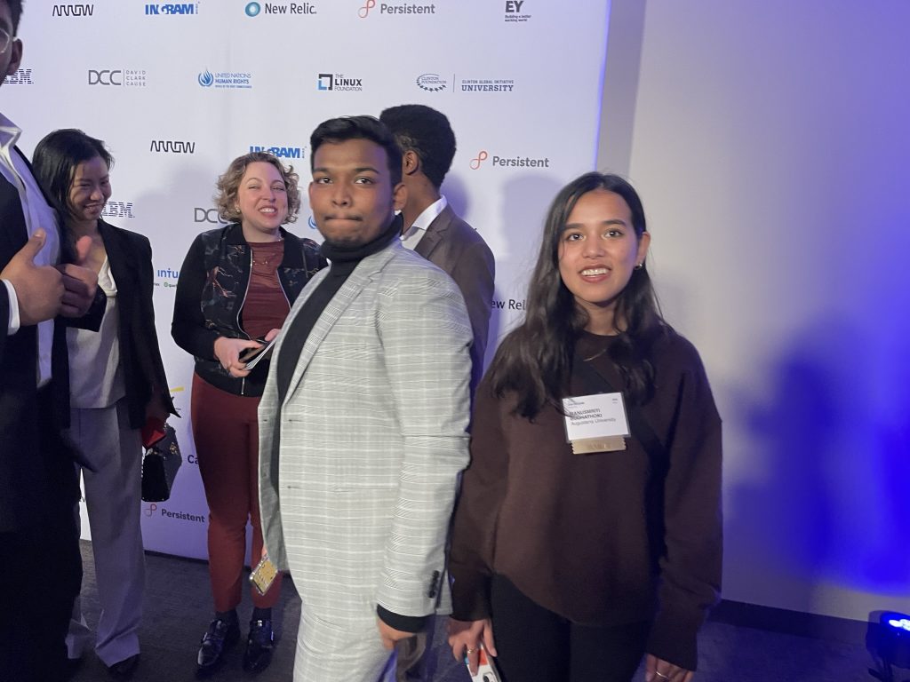 Then the 2nd place winner was announde.. they were several tables away.. it took a few moments to register but then the other team at our table realize that they were the 1st place winner. They were getting eh $200K and the technical help to develop and deploy their solution in the real world. When it hit them , they all jumped up in tand started hugging each other.. some of them were crying they were so happy. i The team were all international students from Augustana University in South Dakota..Two of the team members were from India, One from Ethiopia and one from Nepal. t was so wonderful to see their joy !