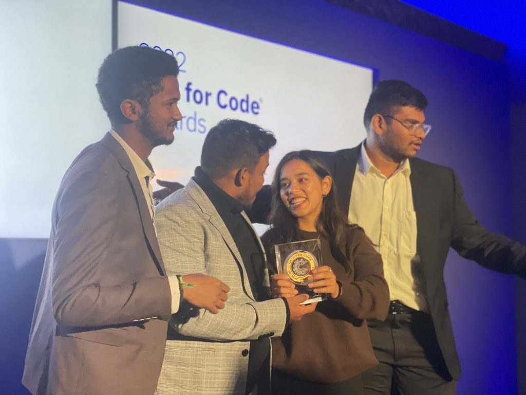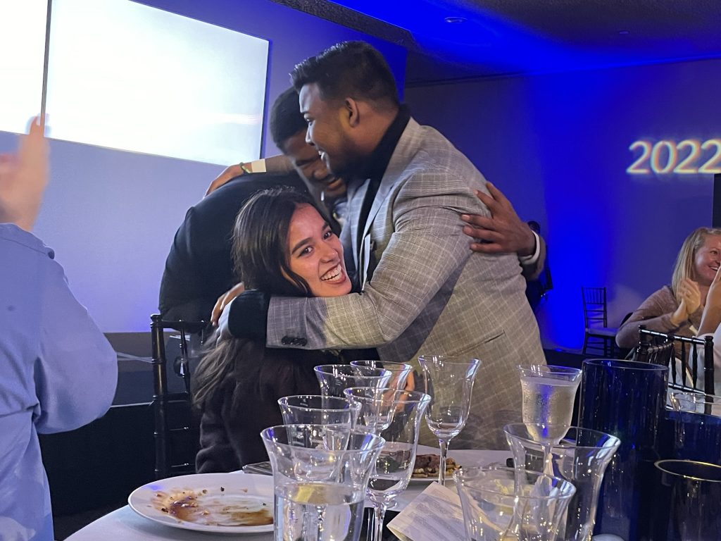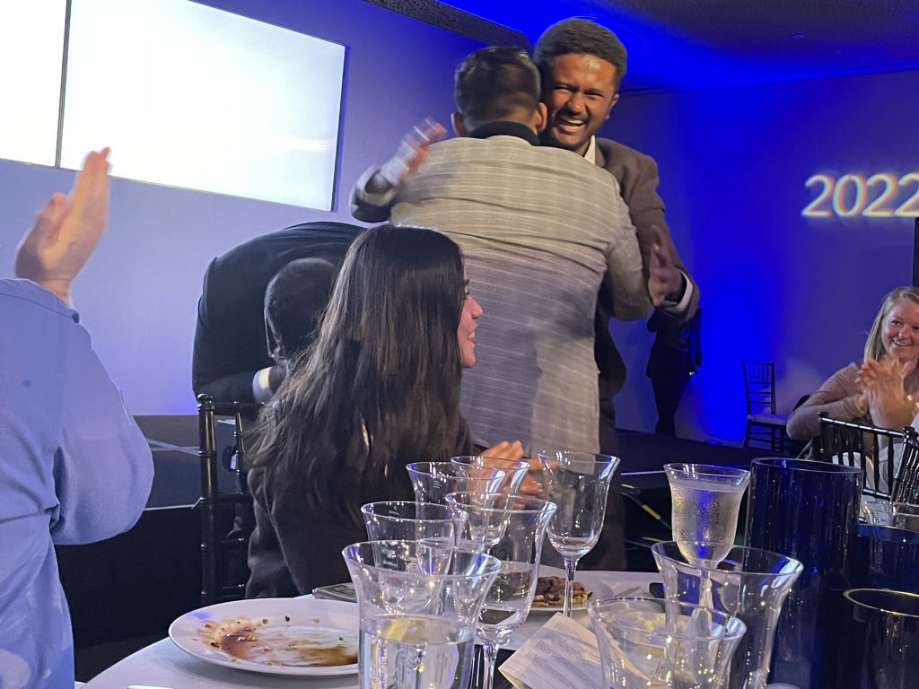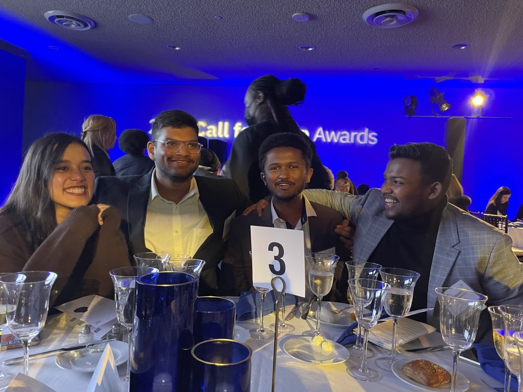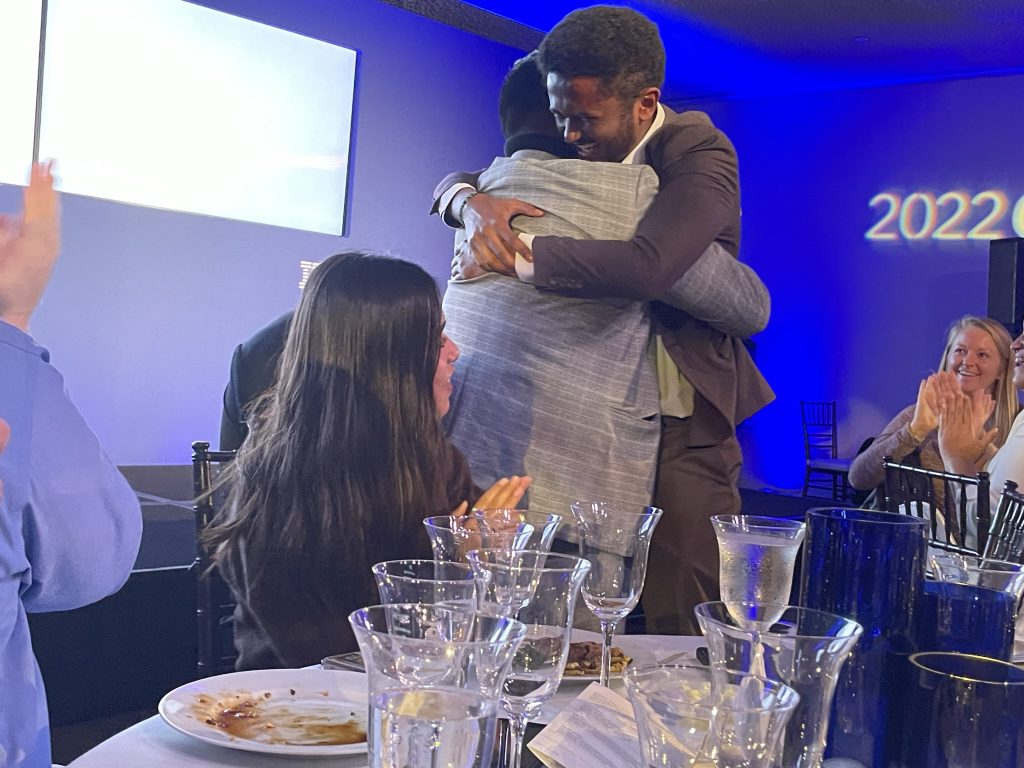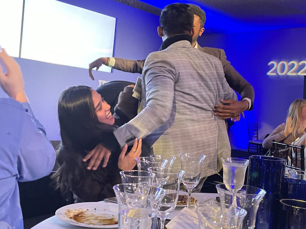 Then the 2nd place winner was announde.. they were several tables away.. it took a few moments to register but then the other team at our table realize that they were the 1st place winner. They were getting eh $200K and the technical help to develop and deploy their solution in the real world. When it hit them , they all jumped up in tand started hugging each other.. some of them were crying they were so happy. i The team were all international students from Augustana University in South Dakota..Two of the team members were from India, One from Ethiopia and one from Nepal. t was so wonderful to see their joy !