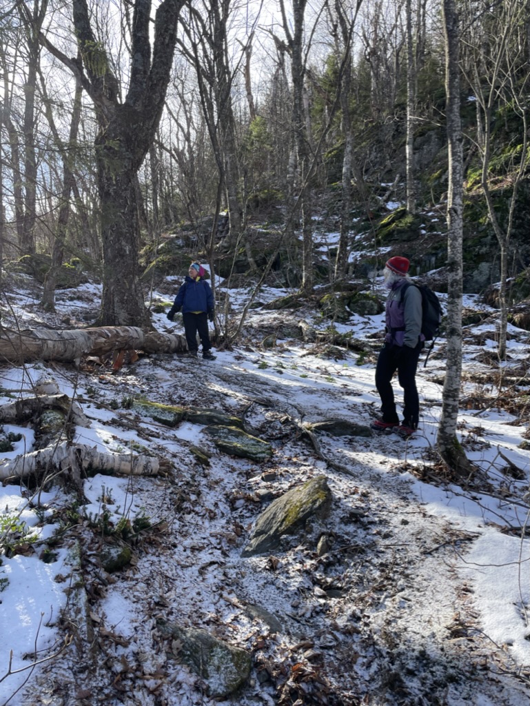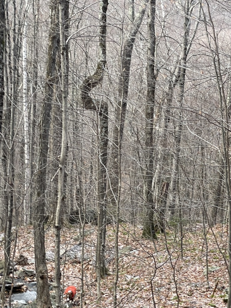 Diane and I took a nice long hike with our friends Cara (Coco) Tom and their dog Hoss. We headed up from their house on Camels hum road on logging roads, then bushwhacked up a stream to the ridge where we met the bamforth ridge trail. We then hiked down that until we cut left and bushwhacked down towards gleason brook. On the way we found an old long ago abandoned farming road we call “sheep shoot”.. and followed it back down to the base of bamforth ridge. It was about 6.5 miles and really nice. It was nice to spend that time with Cara and Tom.. though Tom had to turn back early for a music lesson he was teaching.