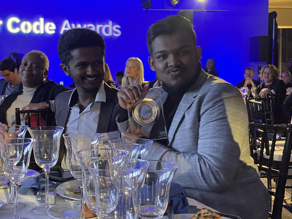 I was seated at a table with two of the finalists.. it was so great talkign to the students and learning what they’d built ! One by one the teams and their projects were introduced.