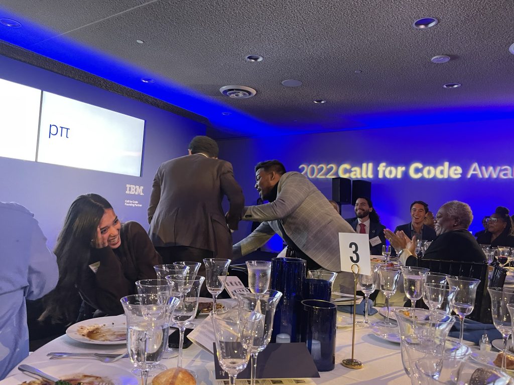 I am down in NYC.. (actually in Newark) after an Amazing Day. I came down for the day to attend the years final event for the “call for code” (CFC) event being held at the United nations. (My mom worked here in the 50’s !) . C FC is a technology for a good program that IBM sponsors.This was the big reveal of this years winners. id been a judge in part of the competition . . It’s one of the types of events I loved from my days at IBM. There were so many friends from all over the place attending. There were students, educators, scientists. We were all there to see what university students around the world had done with IBM technology to address issues of sustainability. There were teams there from all over the world… India, Malaysia, Africa… And the US. There were also teams there from black girls code… A wonderful organization that my friend Yolanda is involved with. There was one team there of these amazing young women… (One of them, Kennedie, gave me a great tip on using Microsoft code to do HTML/CSS editing)