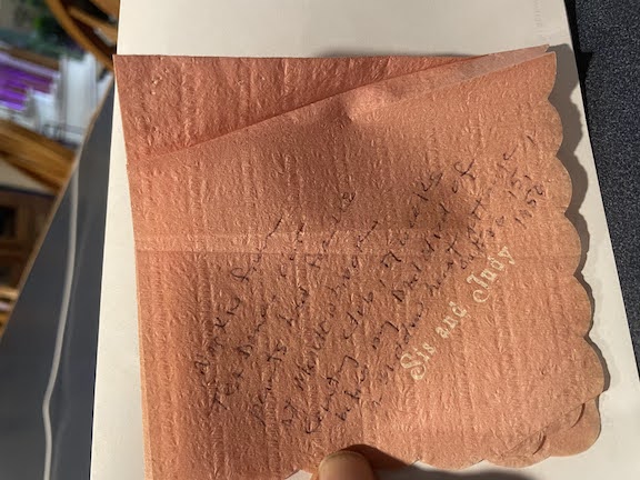 There was even this napkin printed in honor of a party my grandparents gave in honor of my mom and Sis..