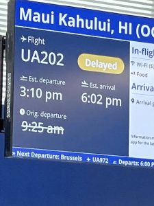 The flight to Chicago was uneventful.. but once in Chicago a broken toilet on the plane delayed our 9:25 flight to maui.. for an hour.. then two hours.. and eventually to a change of plane and gate 6 hours later.. It wasnt too bad since we hung out in the lounge and ate.. but we were very glad to board the plane at 3PM for the 8 hour gliht.
