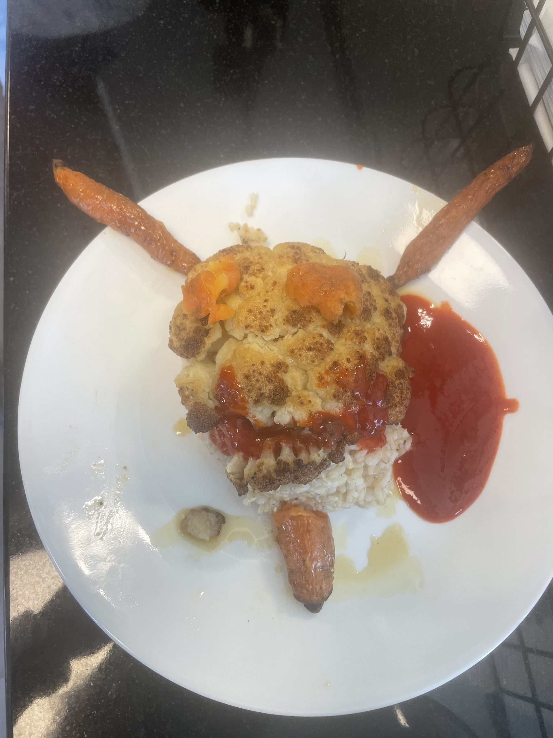 Also can’t help posting Estacada we have such a wonderful food at beta… Tim, ‘Mary and Lise take such great care of us… Today was a delicious braised cauliflower thing somehow it looked demonic to me… What do you think?