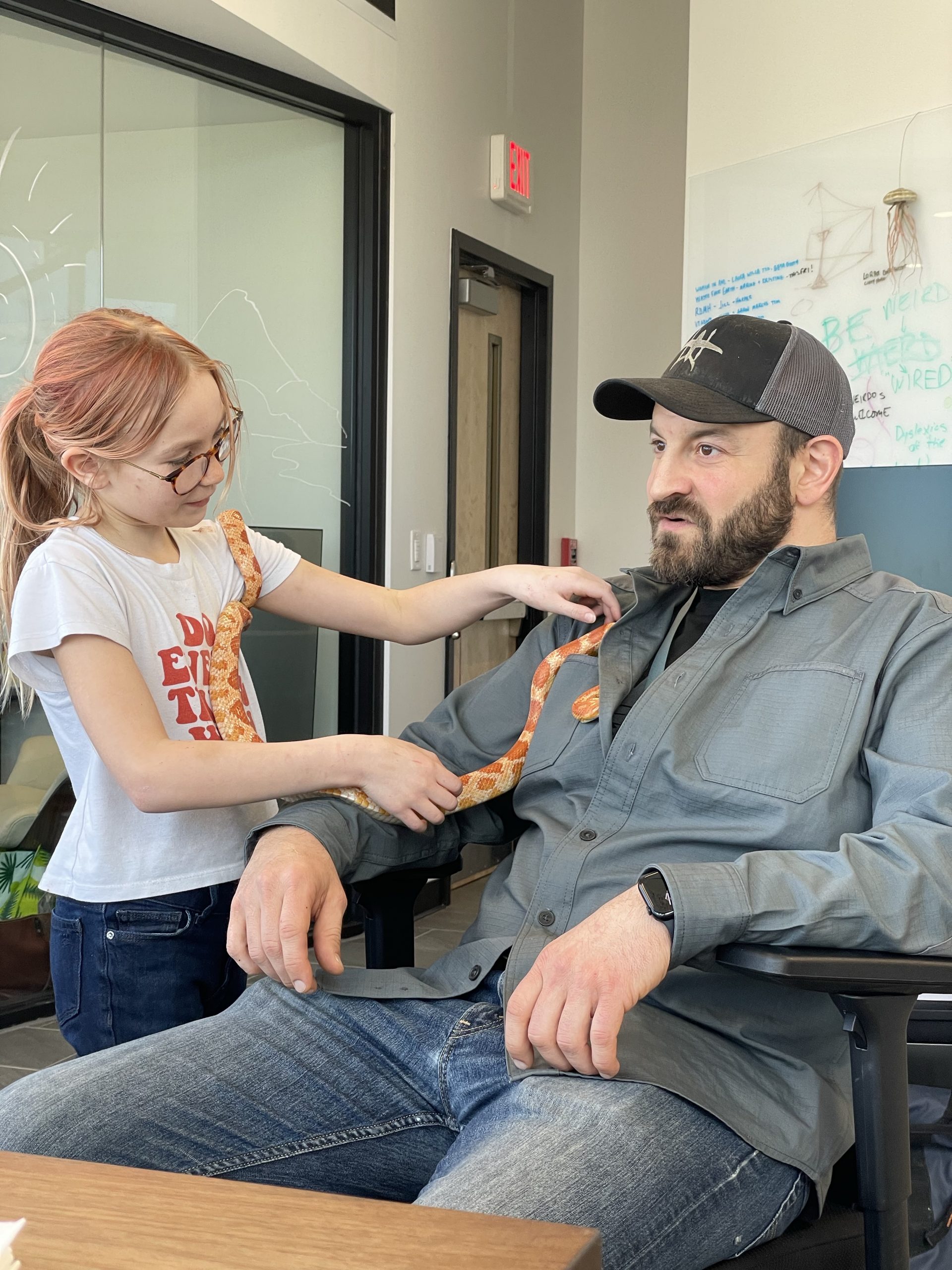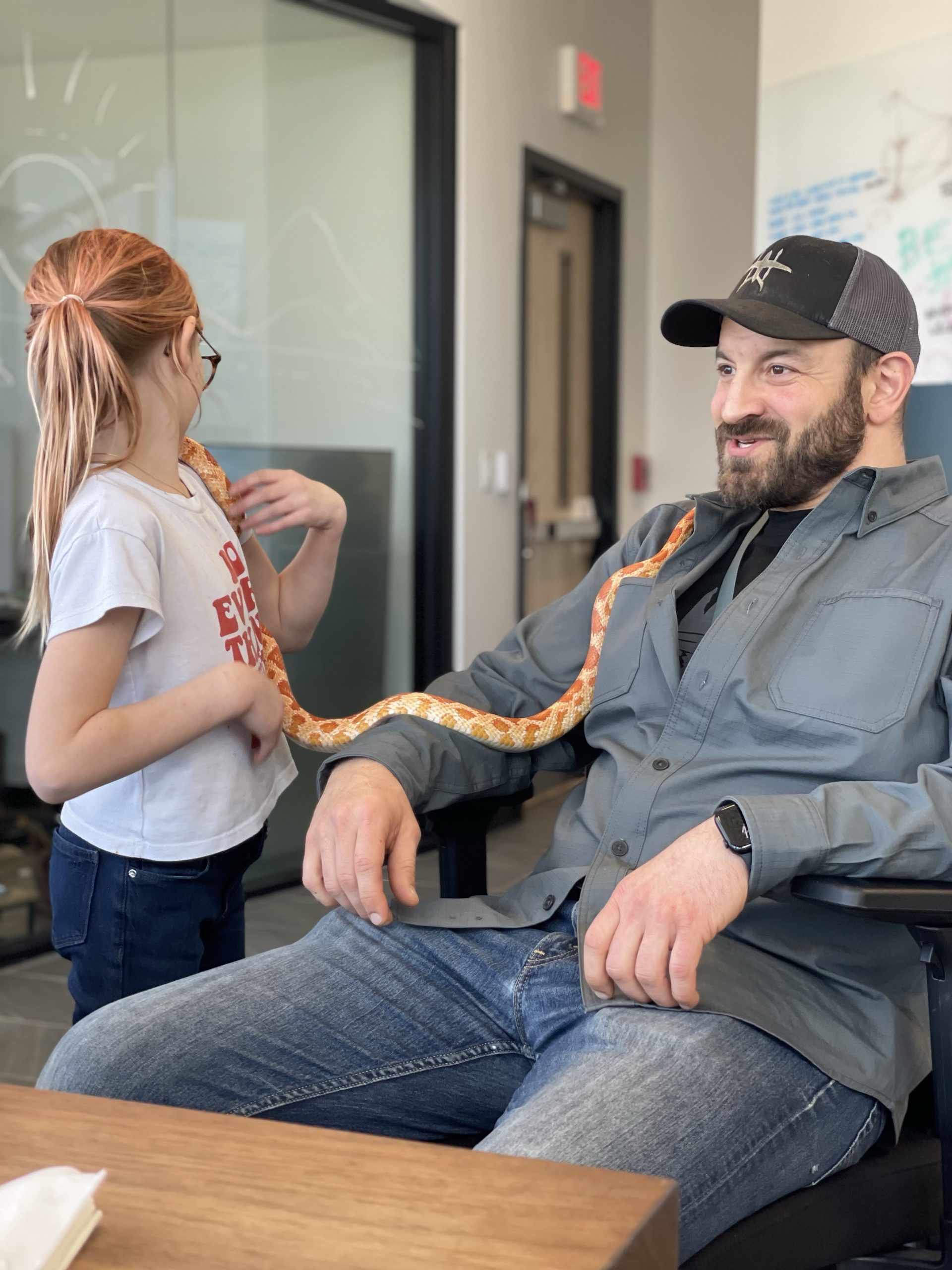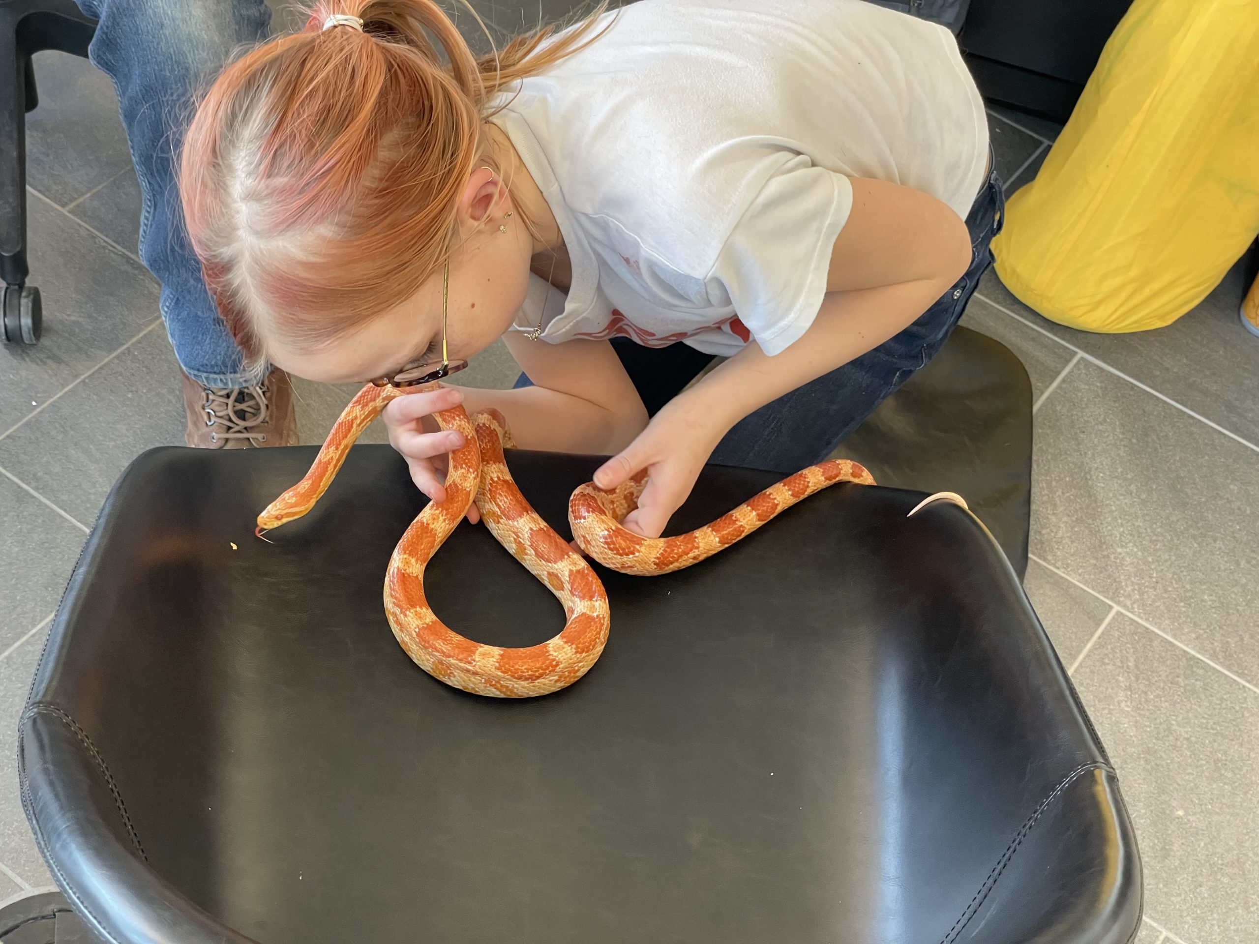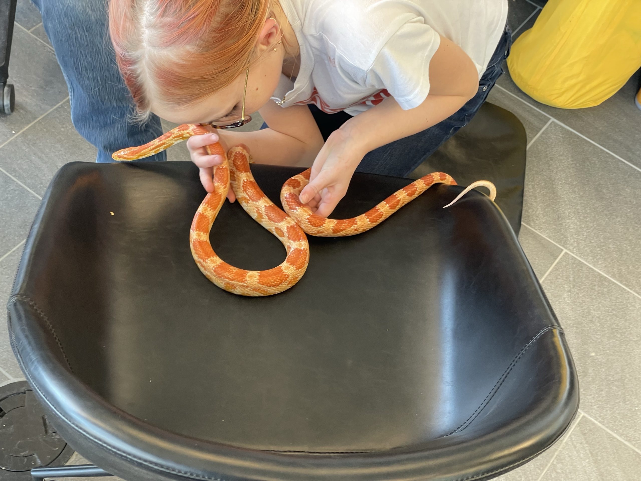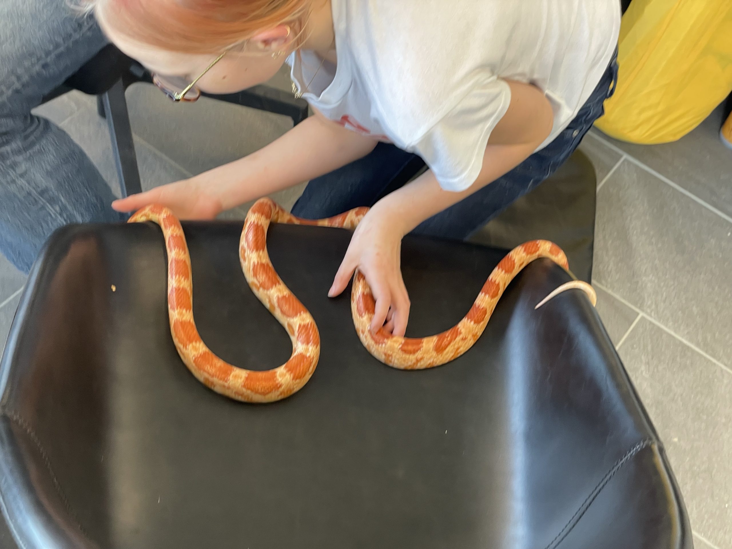 Then A cool surprise at work… My good friend aaron brought in his snake… Call Clementine. She’s a rare covering. I thought her coloring really matched her friend Ruby’s coloring… We took lots of turns handling snake… Such a cool creature