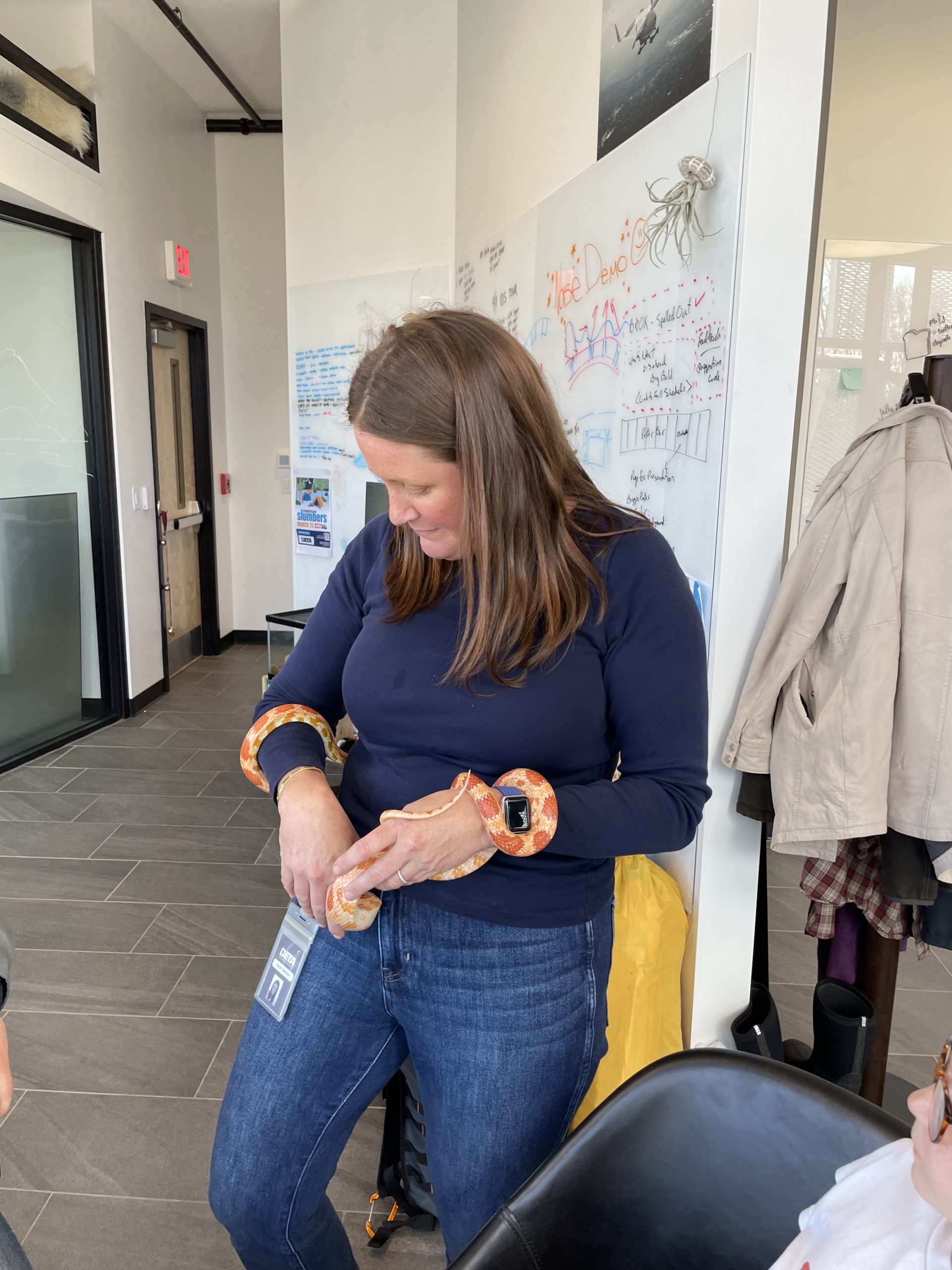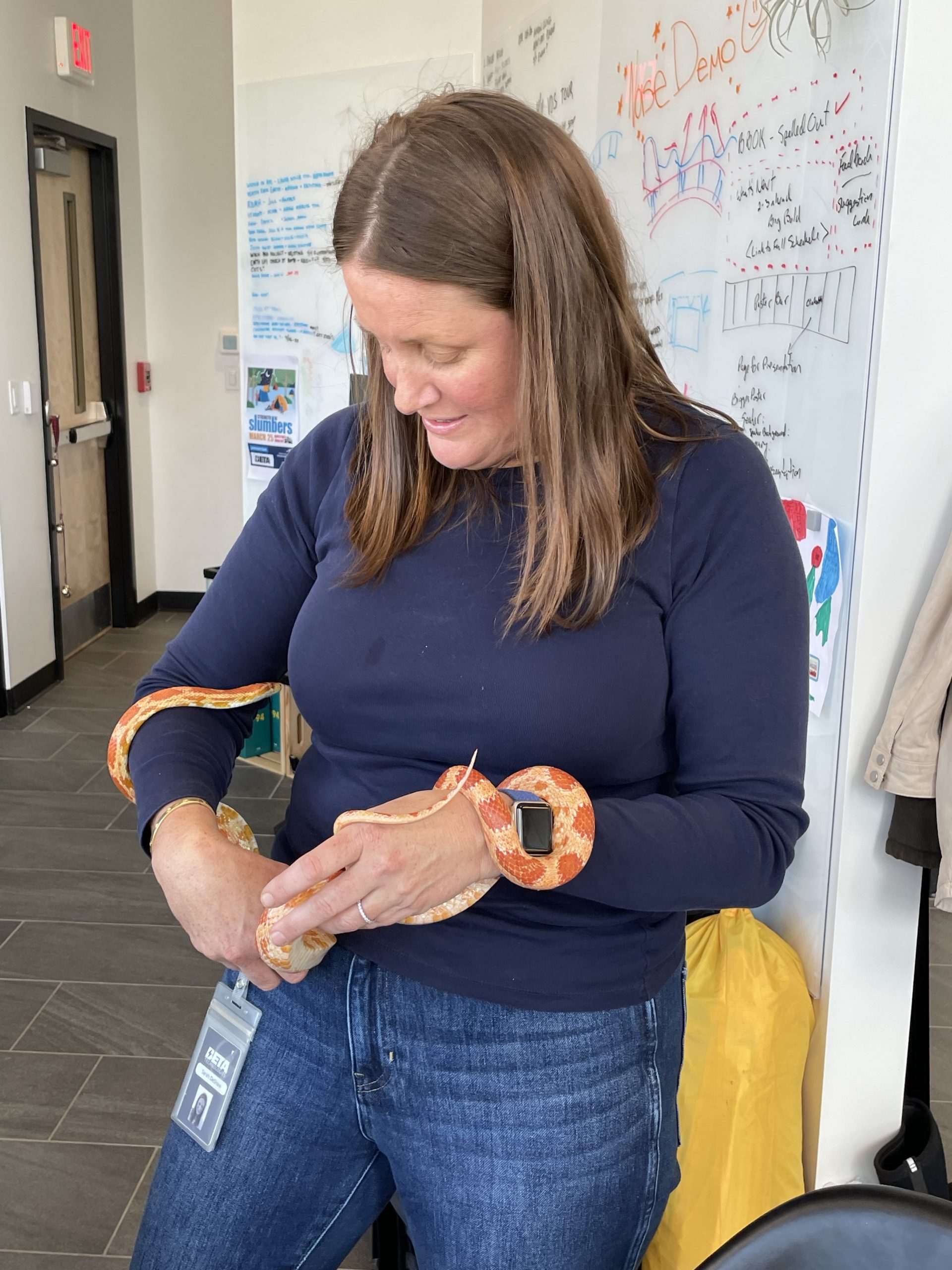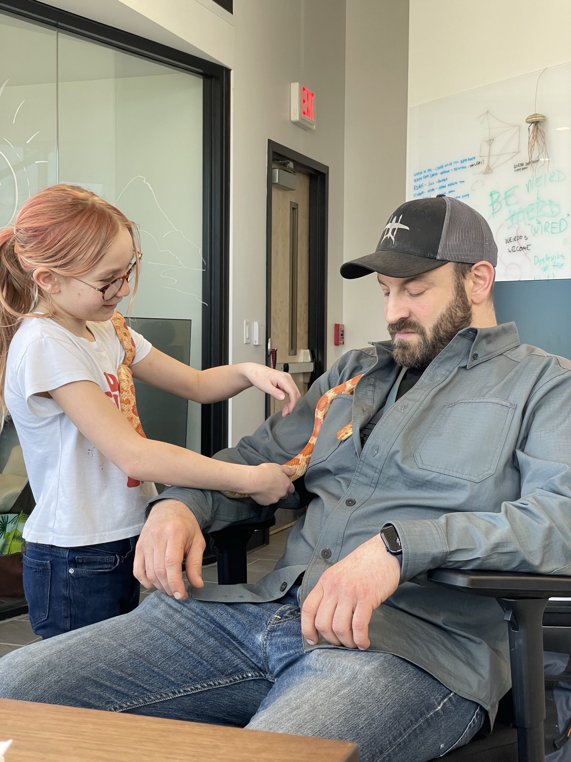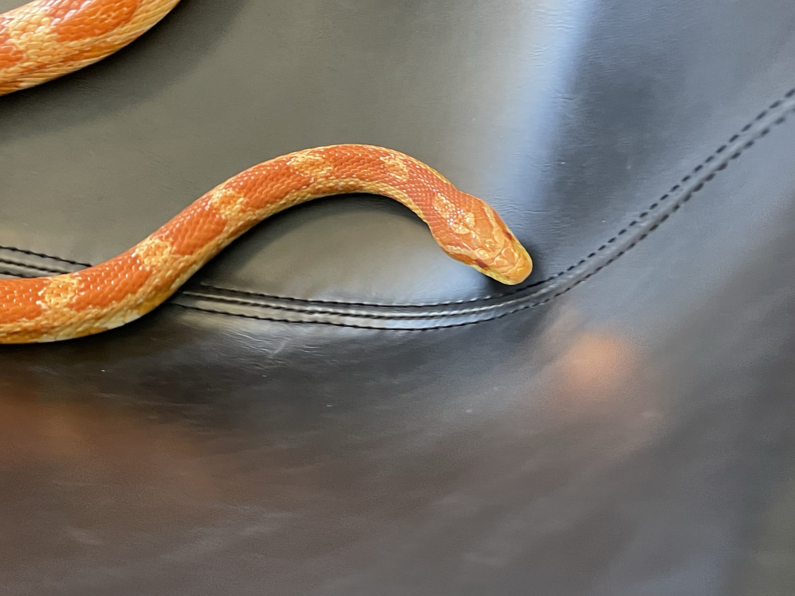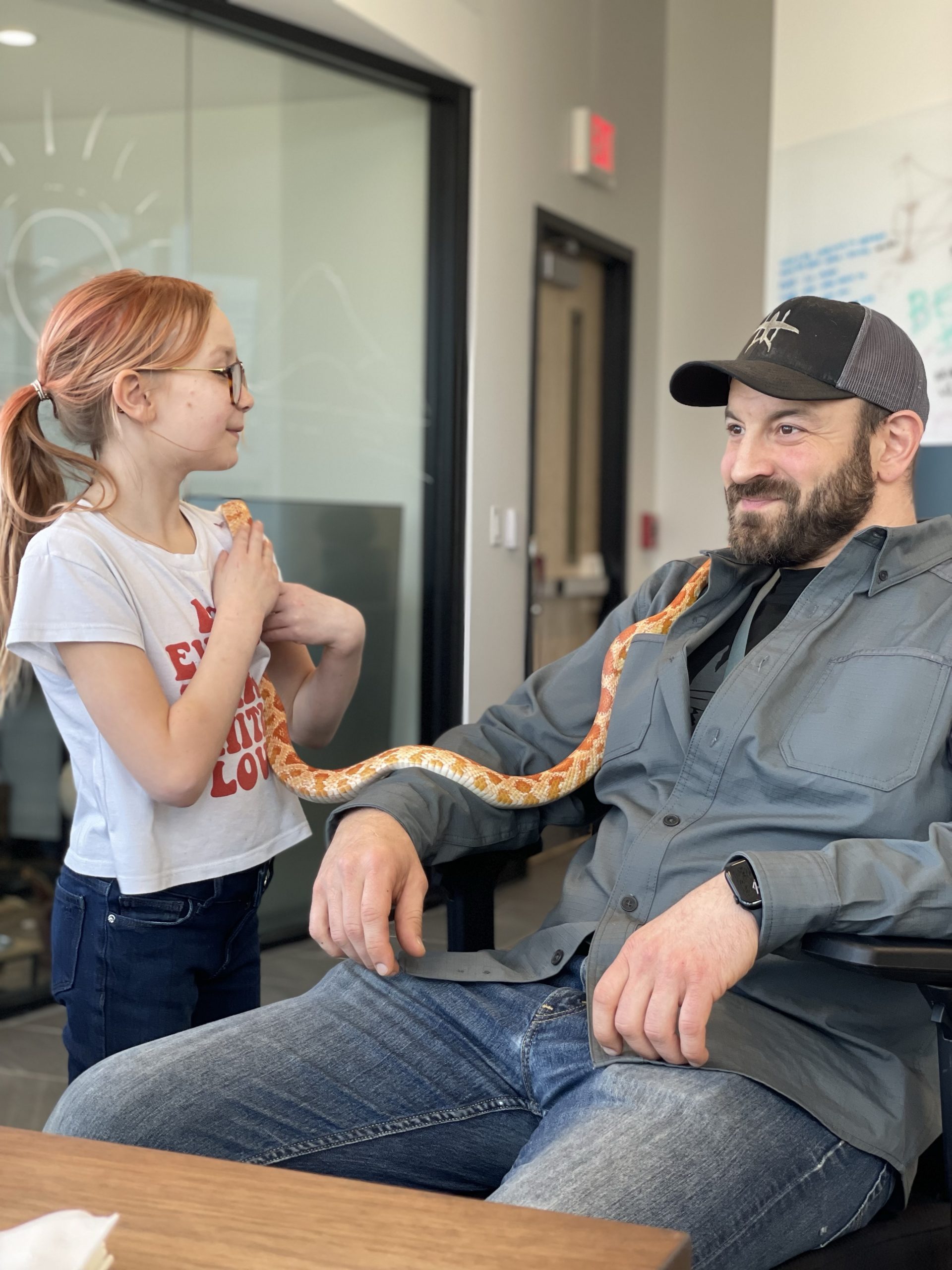 Then A cool surprise at work… My good friend aaron brought in his snake… Call Clementine. She’s a rare covering. I thought her coloring really matched her friend Ruby’s coloring… We took lots of turns handling snake… Such a cool creature