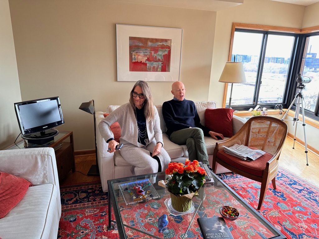 SOm folks call Minneapolis the ‘Mini-Apple’.. because its the New York of … Minnesota maybe ? I love the city.. lots of parks and pathologically nice people. We had fun today . We started with a walk with my Mom.. she does 3-5 miles every day at 89.. then we all met up with our old friends Jeff and Karen for brunch. Jeff and Karen are good friends from the time we all lived in Winchester UK at the same time while I worked at IBM and Diane did her Grad School. . Jeff and Karen brought a surprise for us.. their .. and our.. friend Anna who lived with us for a couple of weeks pre-covid while she took a furniture making class. She’s a fine woodworker… it was great to see her evolving portfolio.
