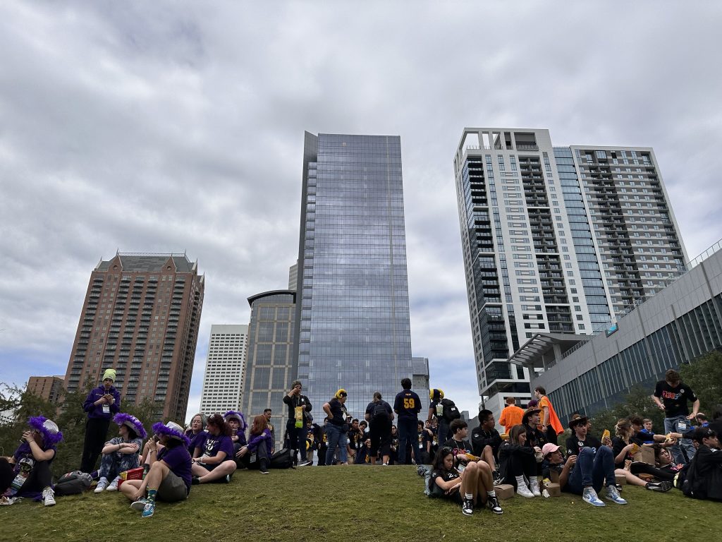 We got to IAH then drove to the Championship venue. It was amazing. I heard that there were 43,000 kids there competing along with their coaches, mentors, refereees etc. It was a massive geek fest.. everyone was weraing team costumes, robots were everywhere.