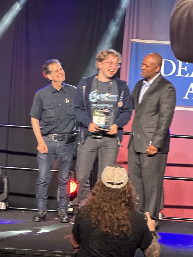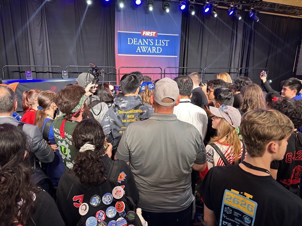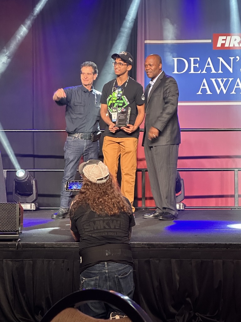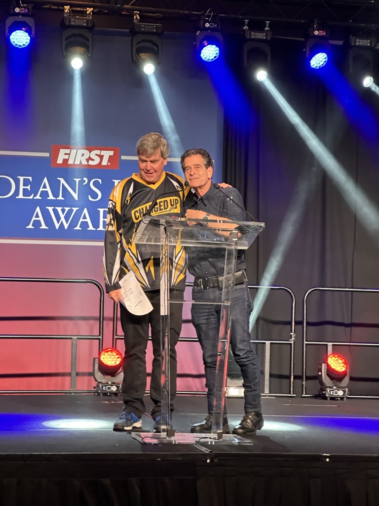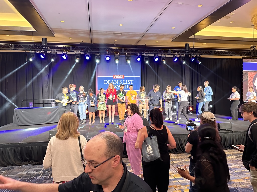 We got there just in time to see the “Dean’s List” lunch, where FIRSt’s leader My friend (and BETA board member) Dean Kamon announces ten winners of the Dean’s List award. for exceptional leadership.. The ballroom was packed with kids nominate for the Deans List . 1 by 1 we heard form the sponsors of FIRST, The FIRST Execs and Dean Kamon then we met the 10 winners.
