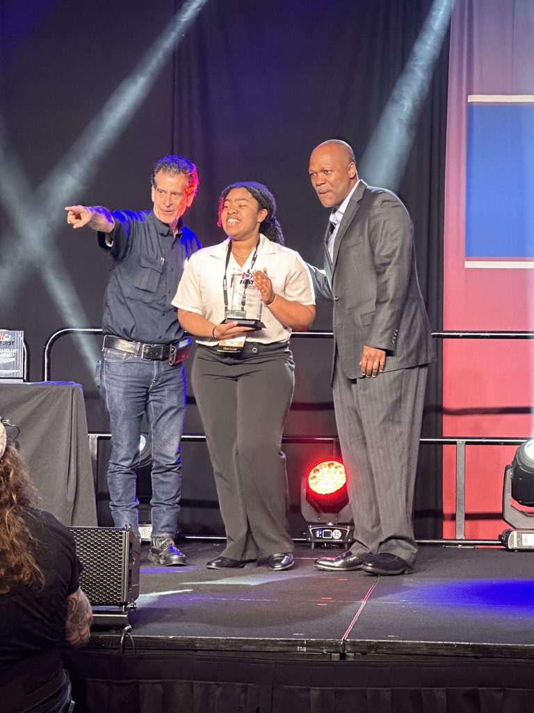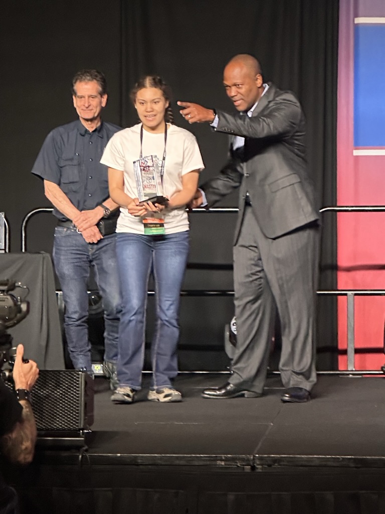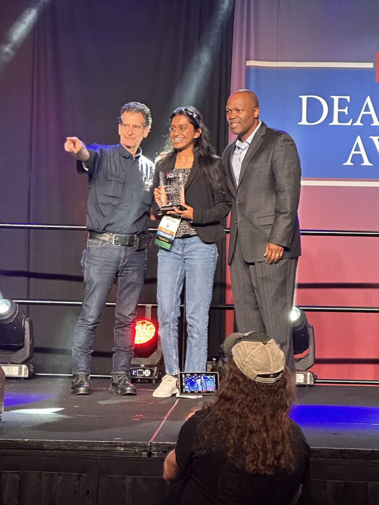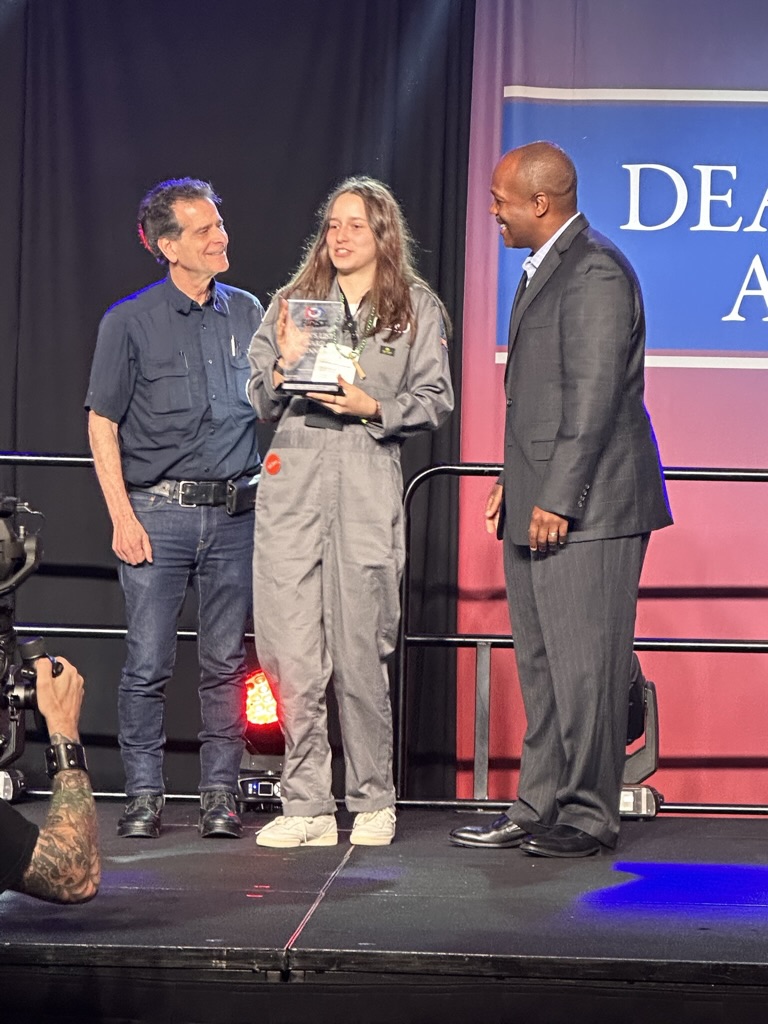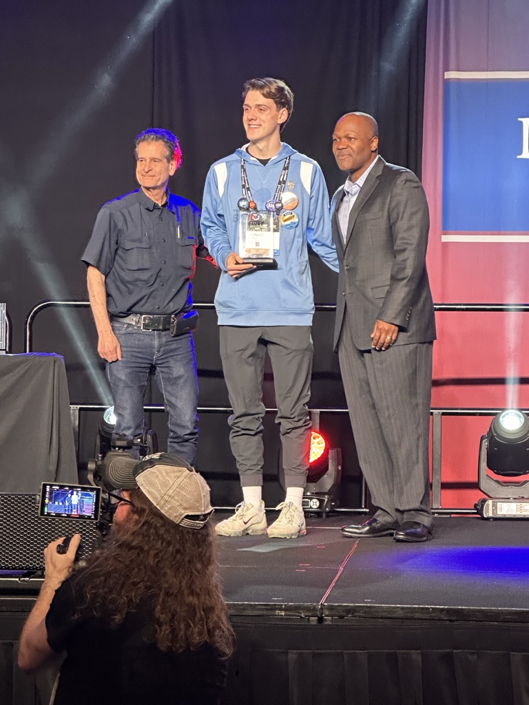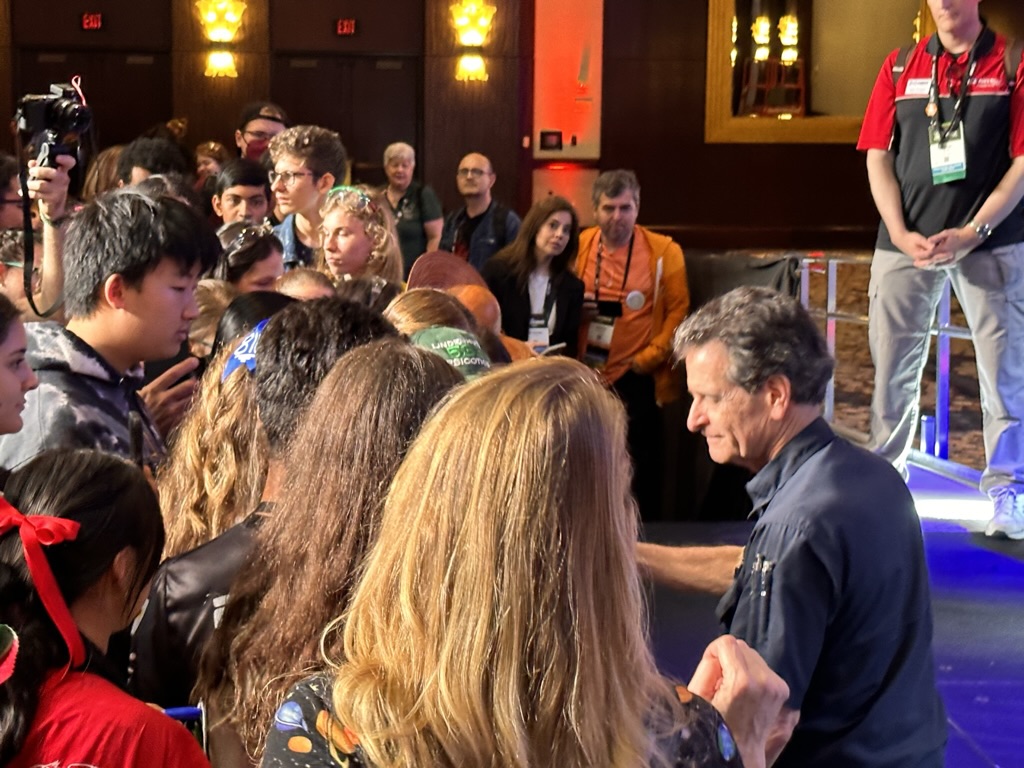 We got there just in time to see the “Dean’s List” lunch, where FIRSt’s leader My friend (and BETA board member) Dean Kamon announces ten winners of the Dean’s List award. for exceptional leadership.. The ballroom was packed with kids nominate for the Deans List . 1 by 1 we heard form the sponsors of FIRST, The FIRST Execs and Dean Kamon then we met the 10 winners.