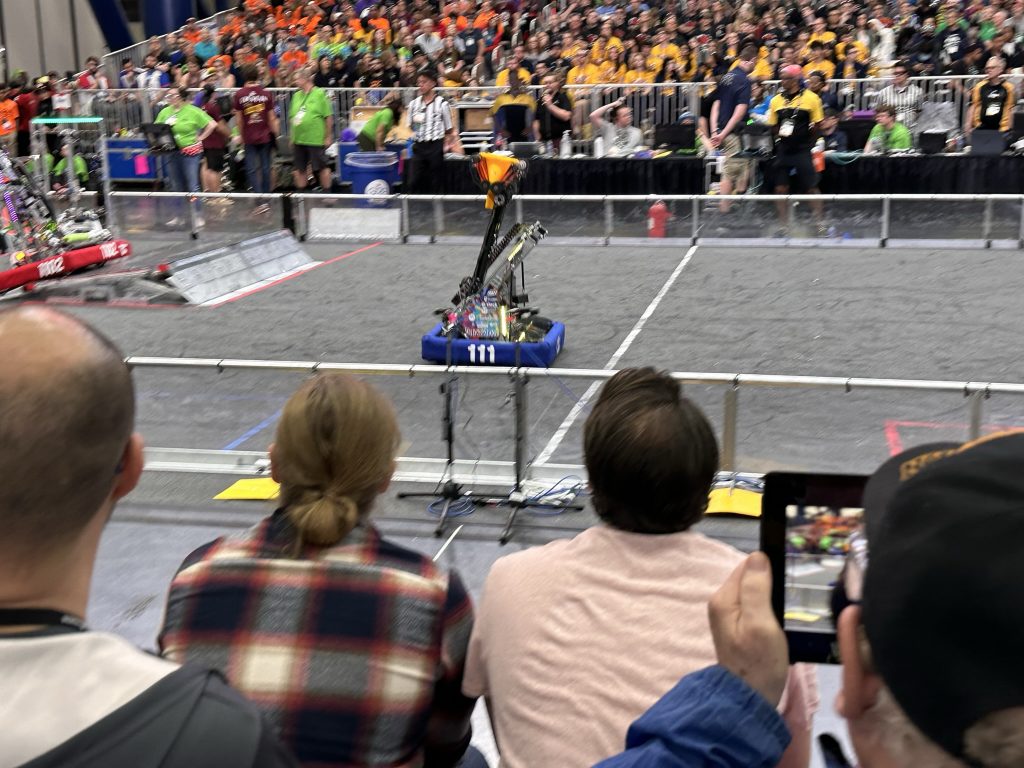 From there we dove into the pits.. we found our team, watched some matches and met a gazillion excited kids and coaches. This is the first world event I’ve been to in nearly 20 years. I was amazed at the energy of the teams and the sophistication of the robots they built !