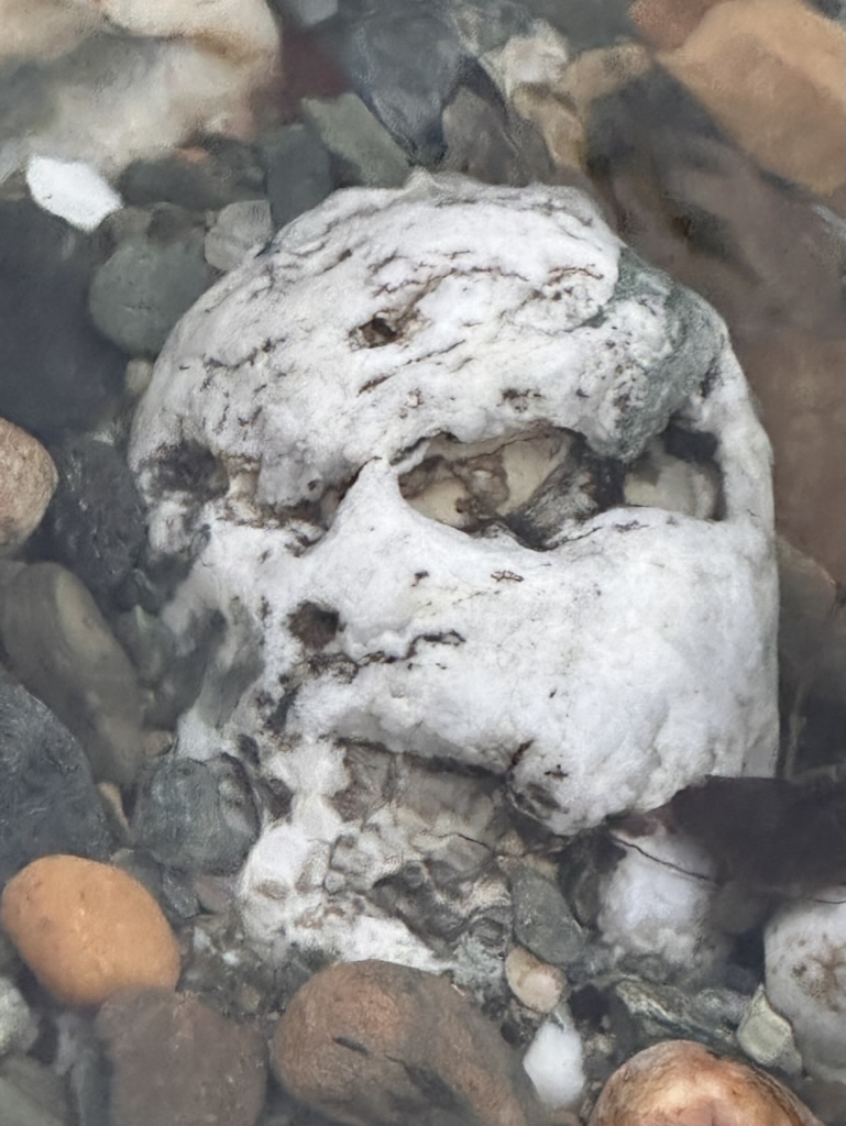Afterwards we all took a walk up the rivershore.. We found a cool and spooky looking rock and some very cool sun spots on the water