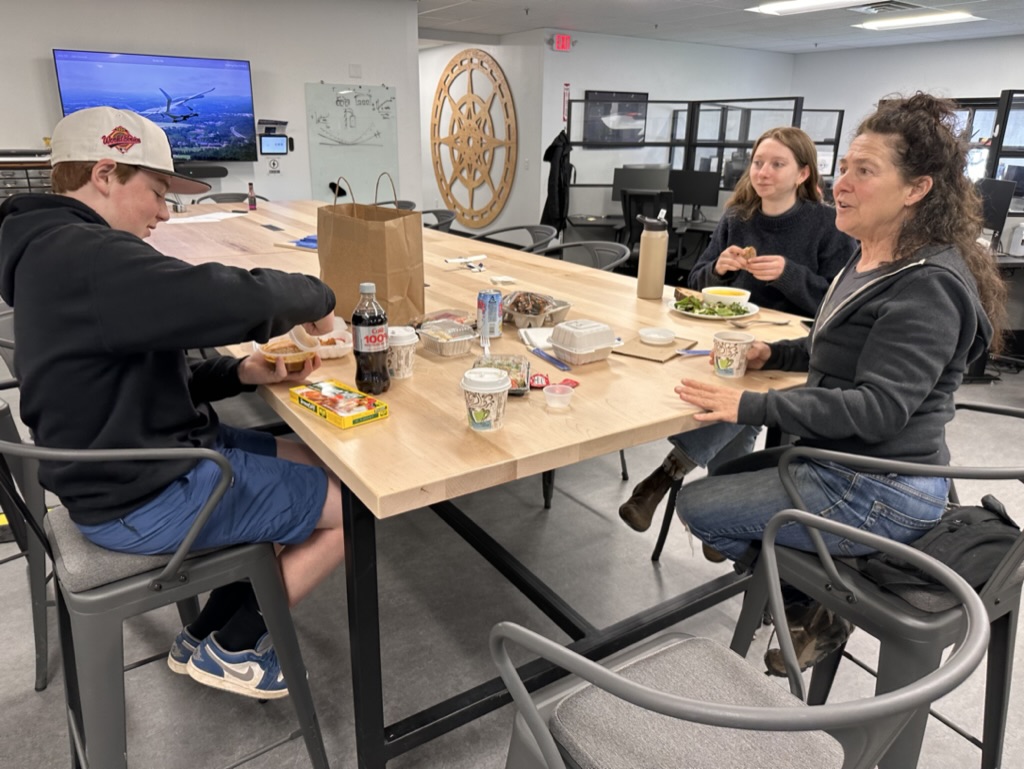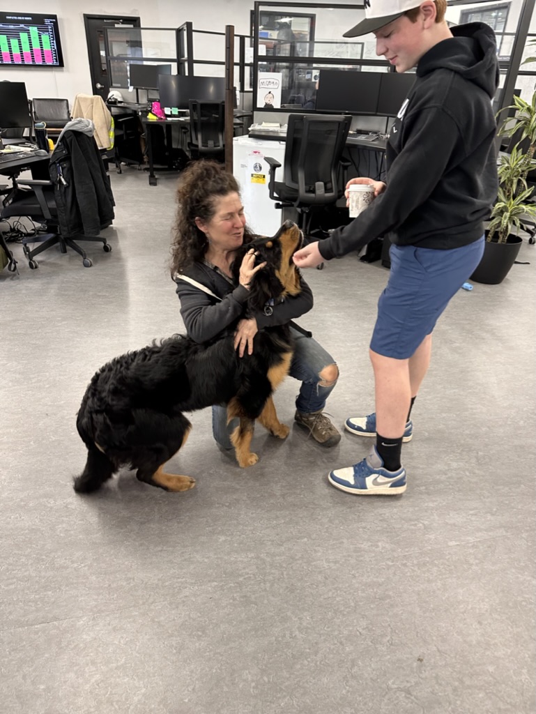 Mid day, DIane brought Finn into Beta.. and brought with her a yummy sushi lunch ! It was fun showing Finn around where I work.